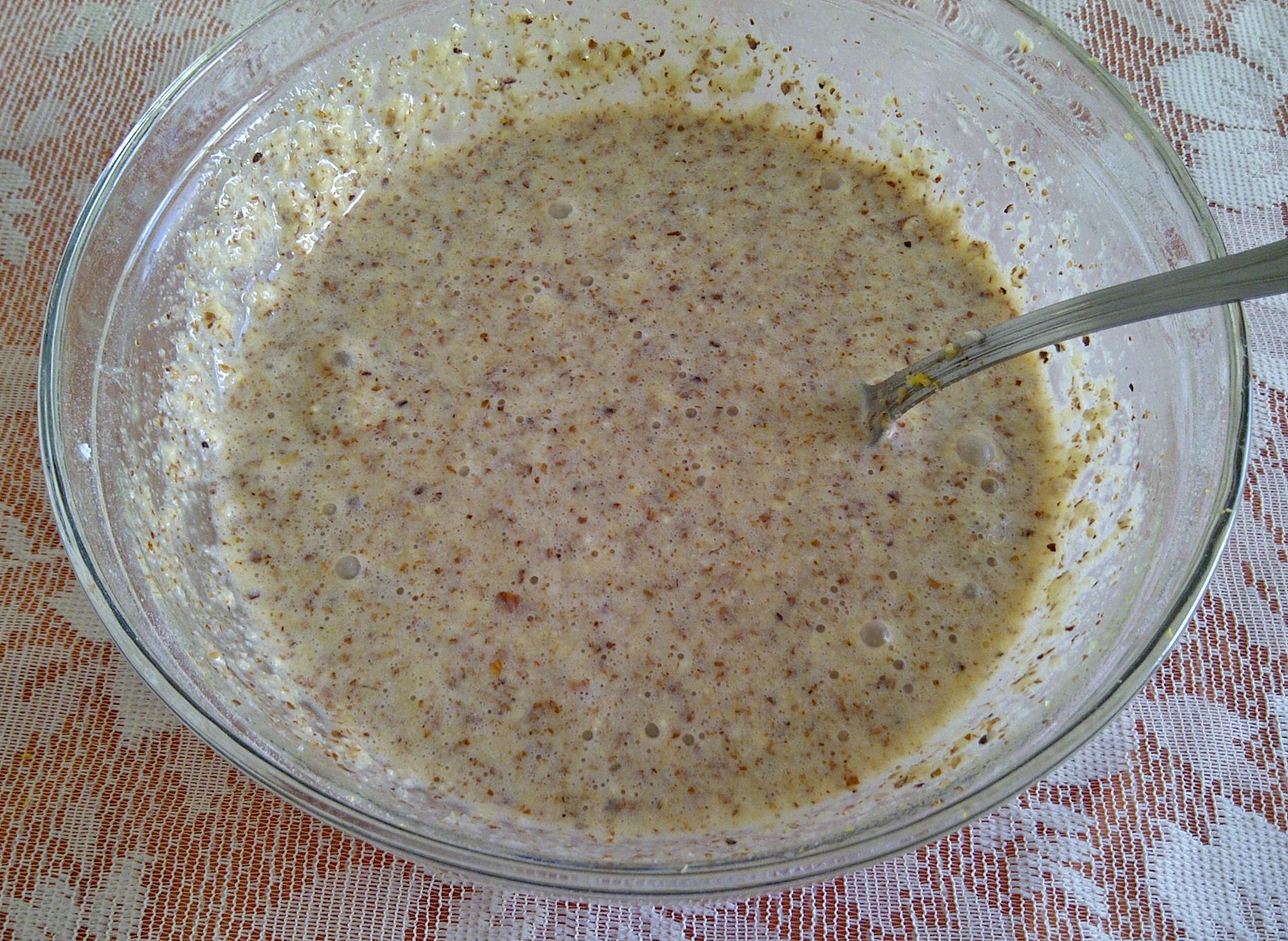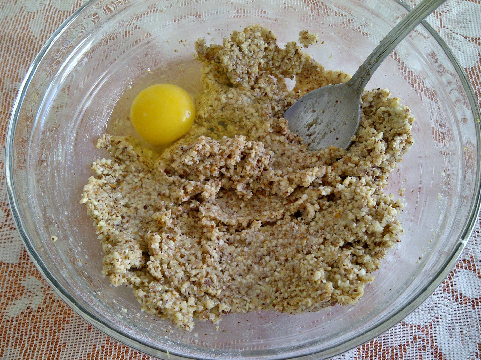Но мы кулинары опытные, из орехов печём не в первый раз и даже не в 15-й, и решение приходит быстро - ПЛЮХ туды ещё яйцо!