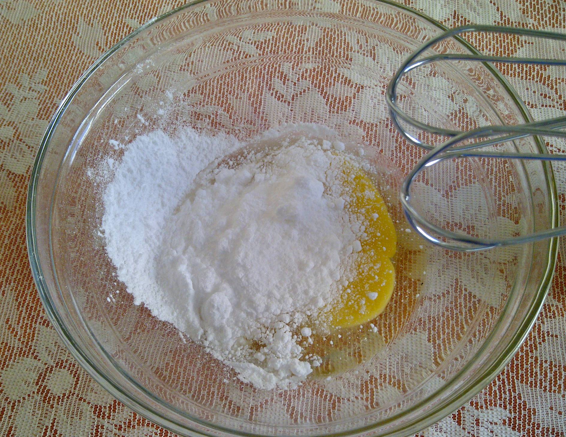 Раззюзяем миксером яйцо с молотой сахарной пудрой: