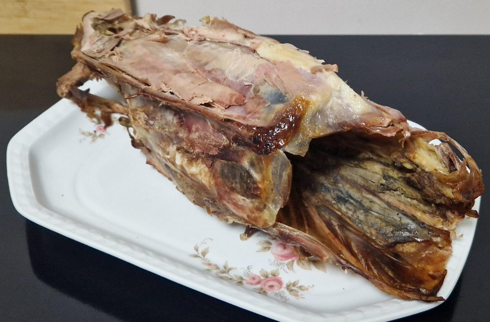 Ел гуся неделю, т.к. кроме меня его никто не ест. Ксати, из скелетона гуся можно суп заделать. Вот его скелетон, добил я мясо гуся сегодня biggrin.gif