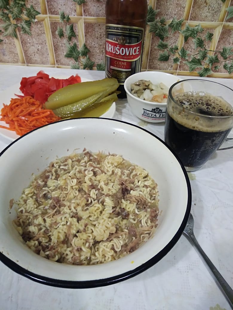 А потом и лапшу заварила, приятного и с праздником)))