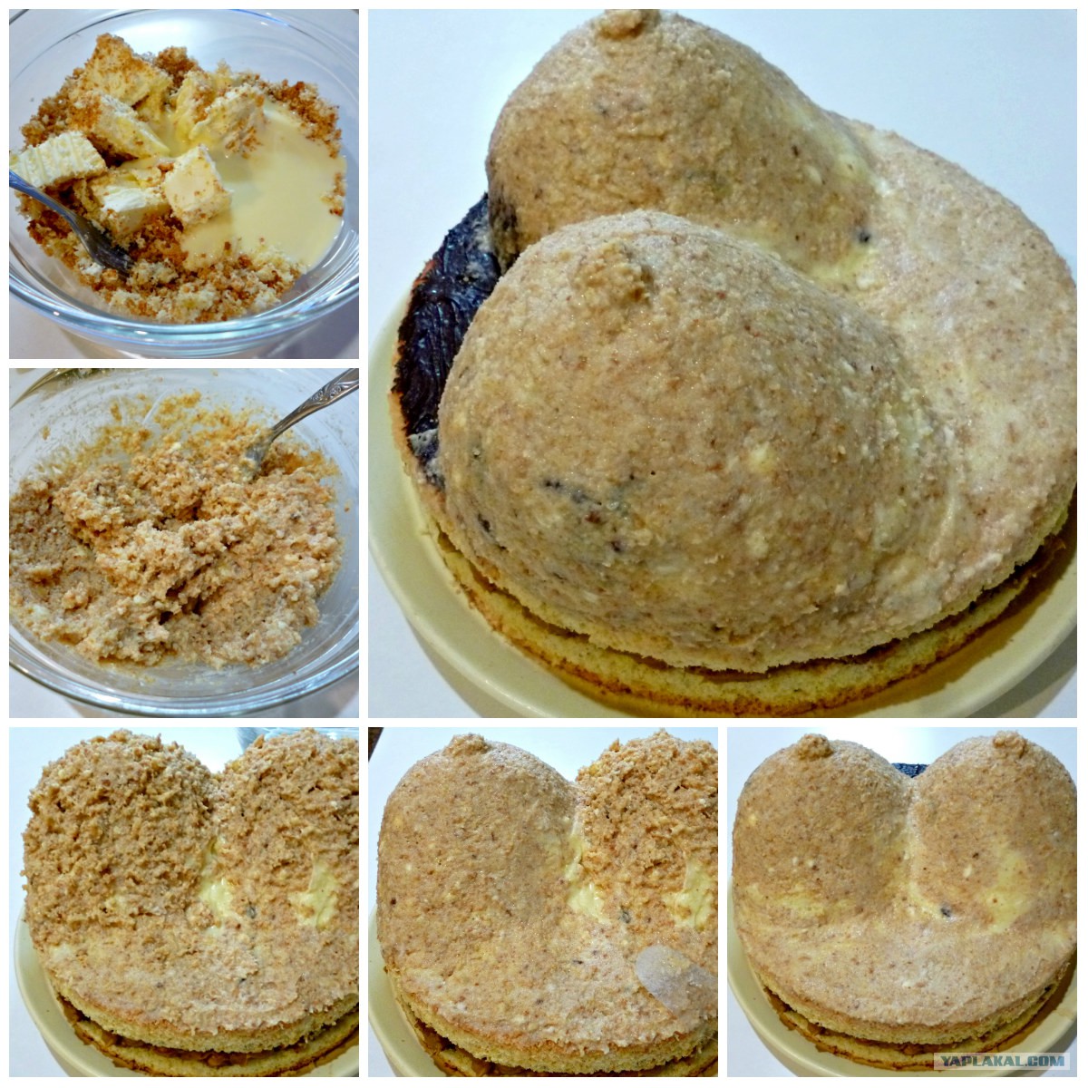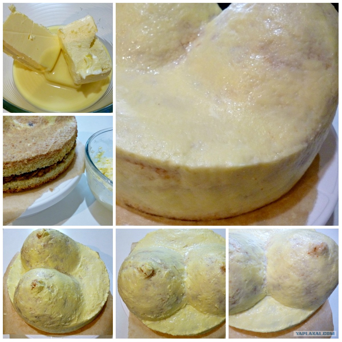 Далее собрать заготовку для груди, промазывая каждый слой кремом, заодно и формируя нужную форму.