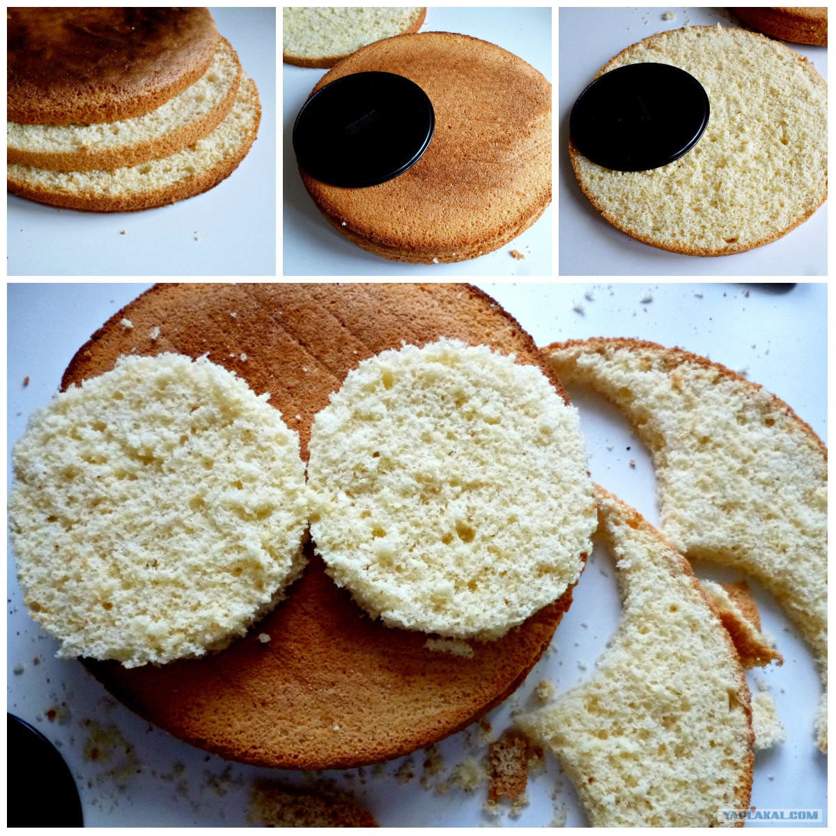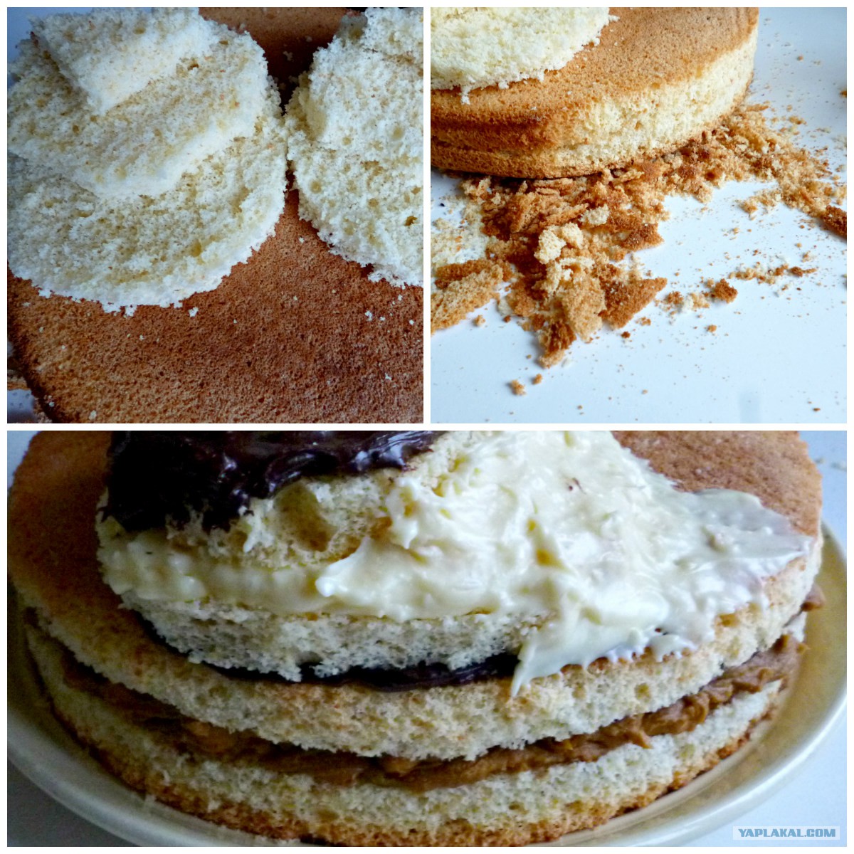 Срезать края у нижних коржей.