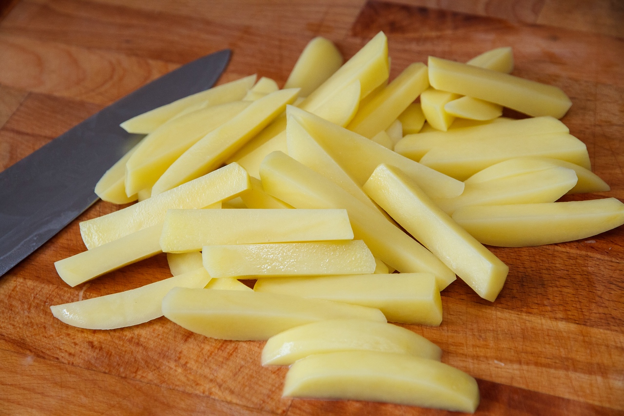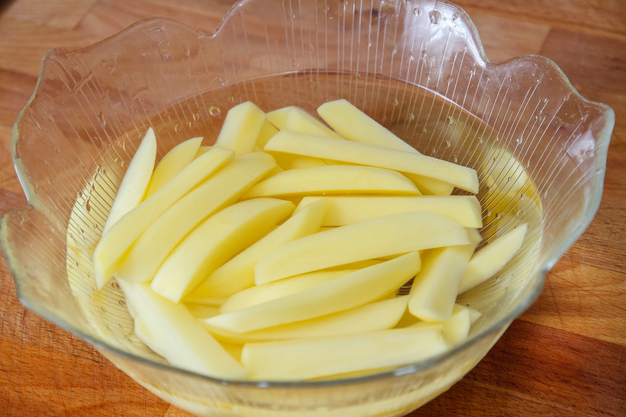 картофель нарезаем на стержни толщиной 0,6-1,0 см. толще или тоньше не советую, иначе он либо очень быстро превратится в сухарь, либо сгорит снаружи, не успев приготовиться внутри.