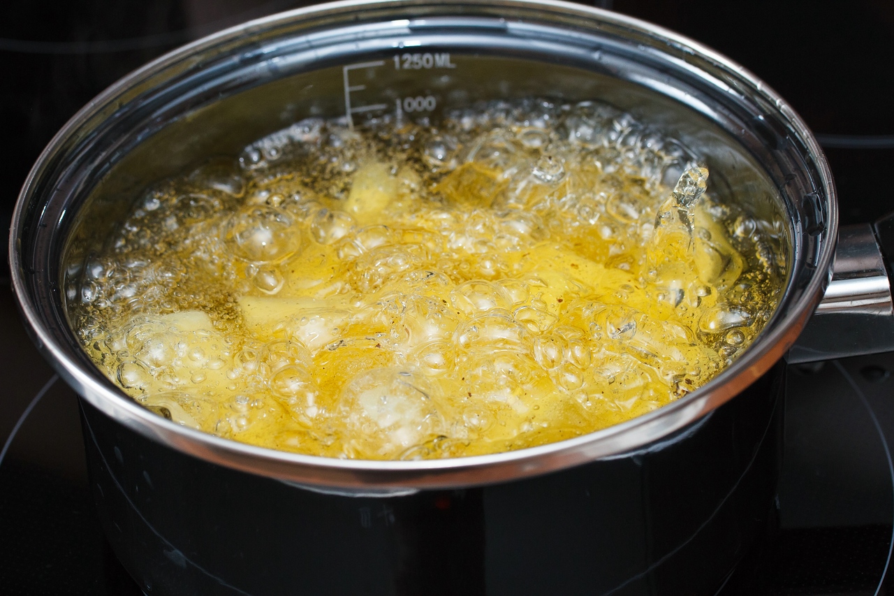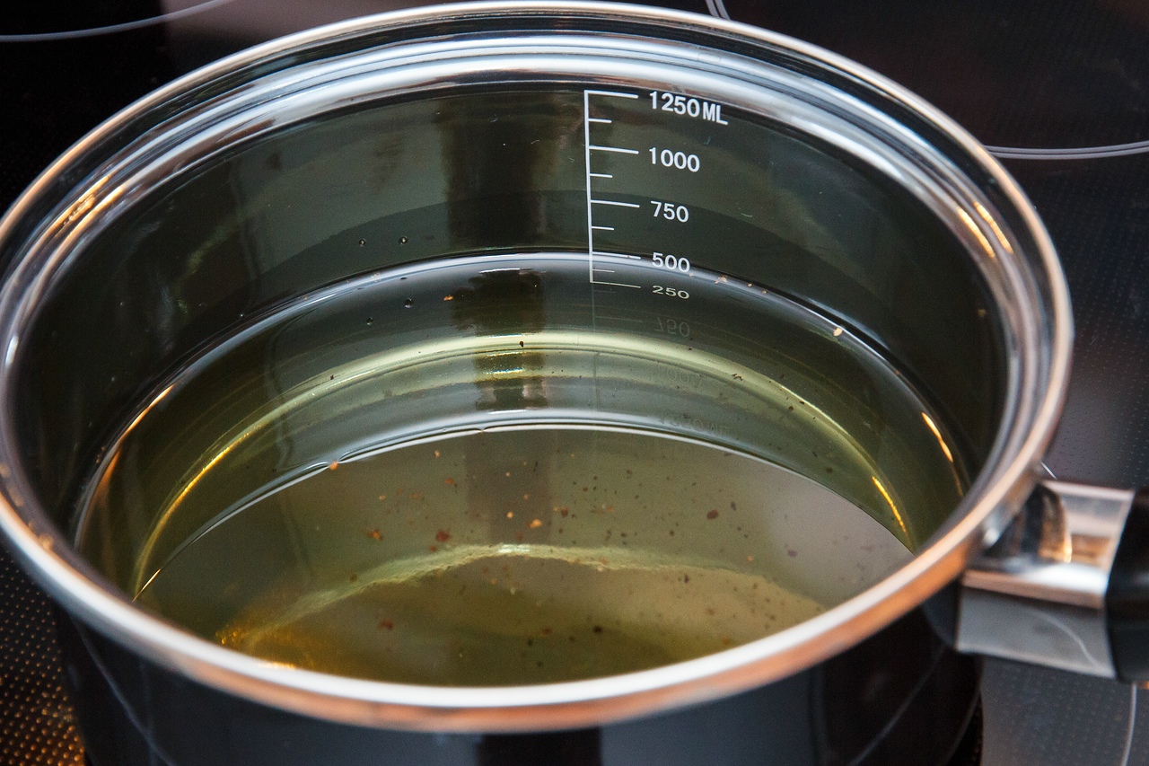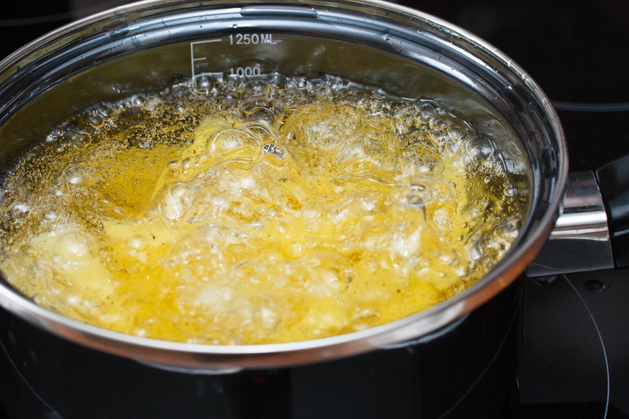 включаем фритюр на 140° наливаем в сотейник растительного масла. я еще добавил свиного смальца для вкуса