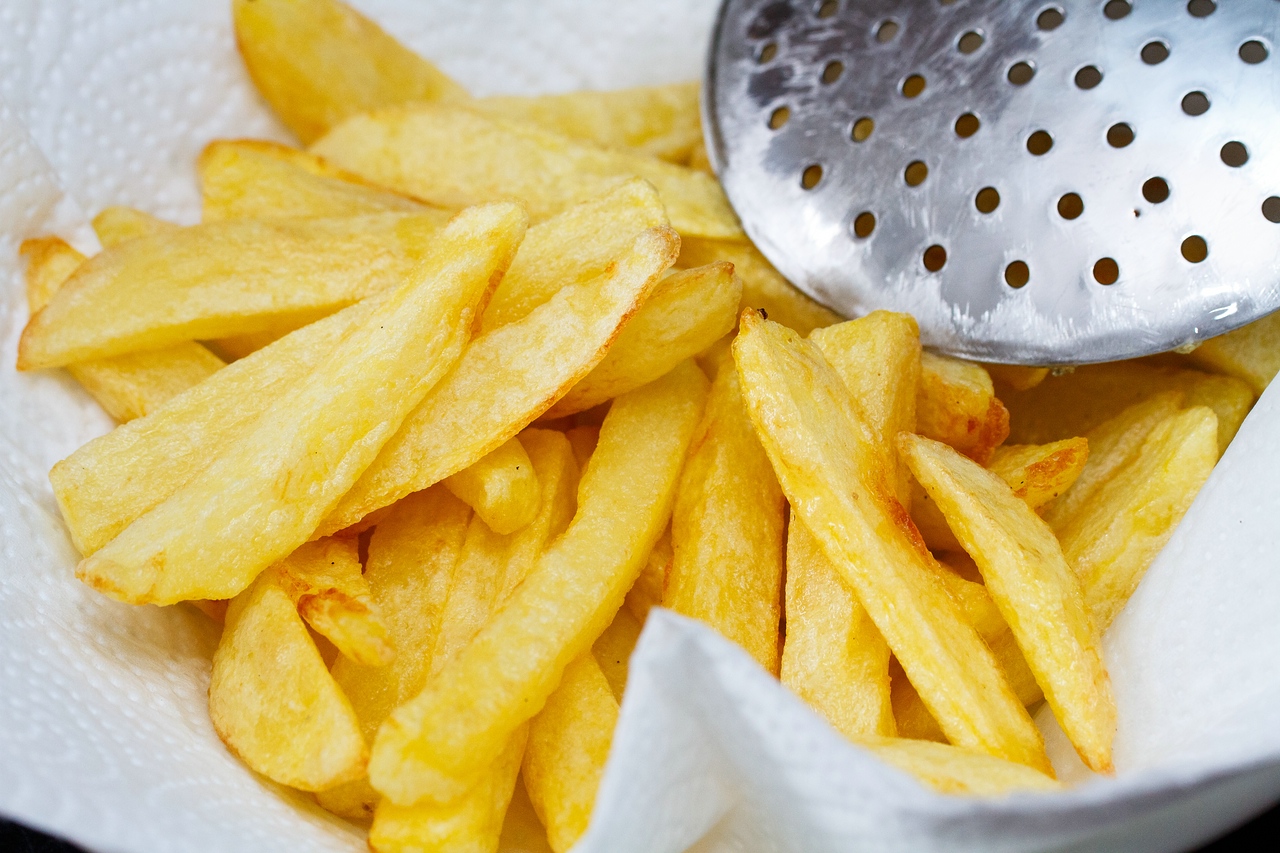 картошку перед фритюром лучше обсушить, иначе фейерверк на кухне обеспечен