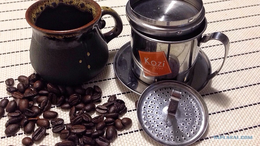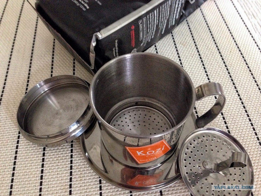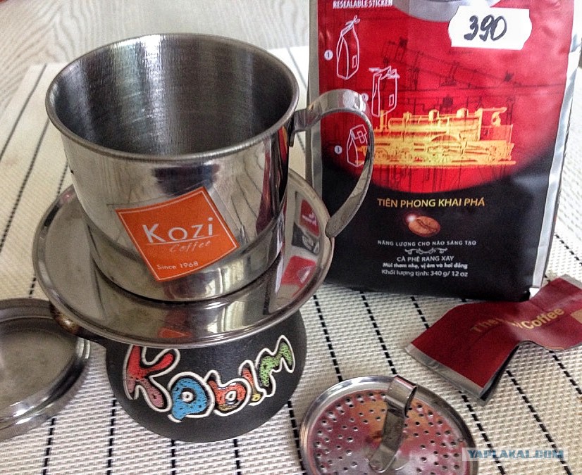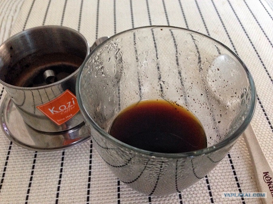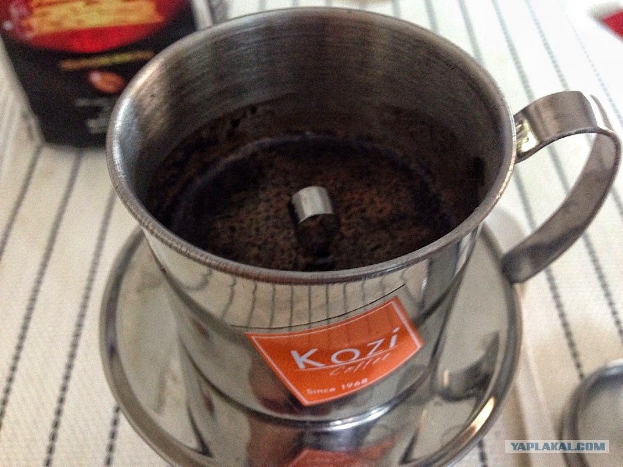 В общем, эту приспособу можно и игнорировать и заваривать в обычной пресс-кружке; это я так, чиста понтануться ну и показать как оно там, на улочках вьетнамских городков.