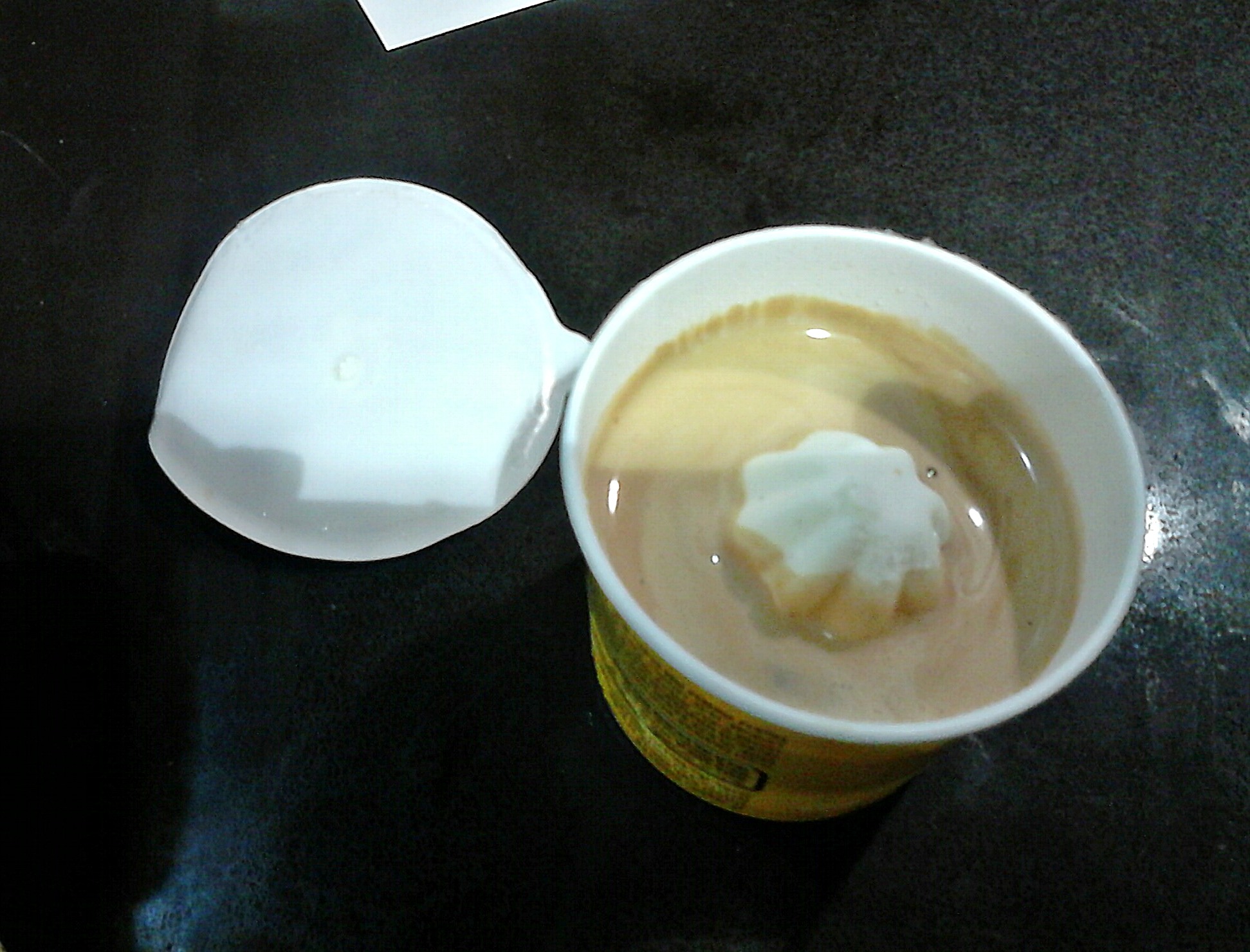 А ещё у нас есть одна сеть заправок, где можно попить вполне годное кофе (в отличии от 2-х других сетей - где горькое говно). Так вот: там у них появилась очень интересная хрень - мороженка в бумажном стаканчике, а в неё - напускают горячее экспрессо!