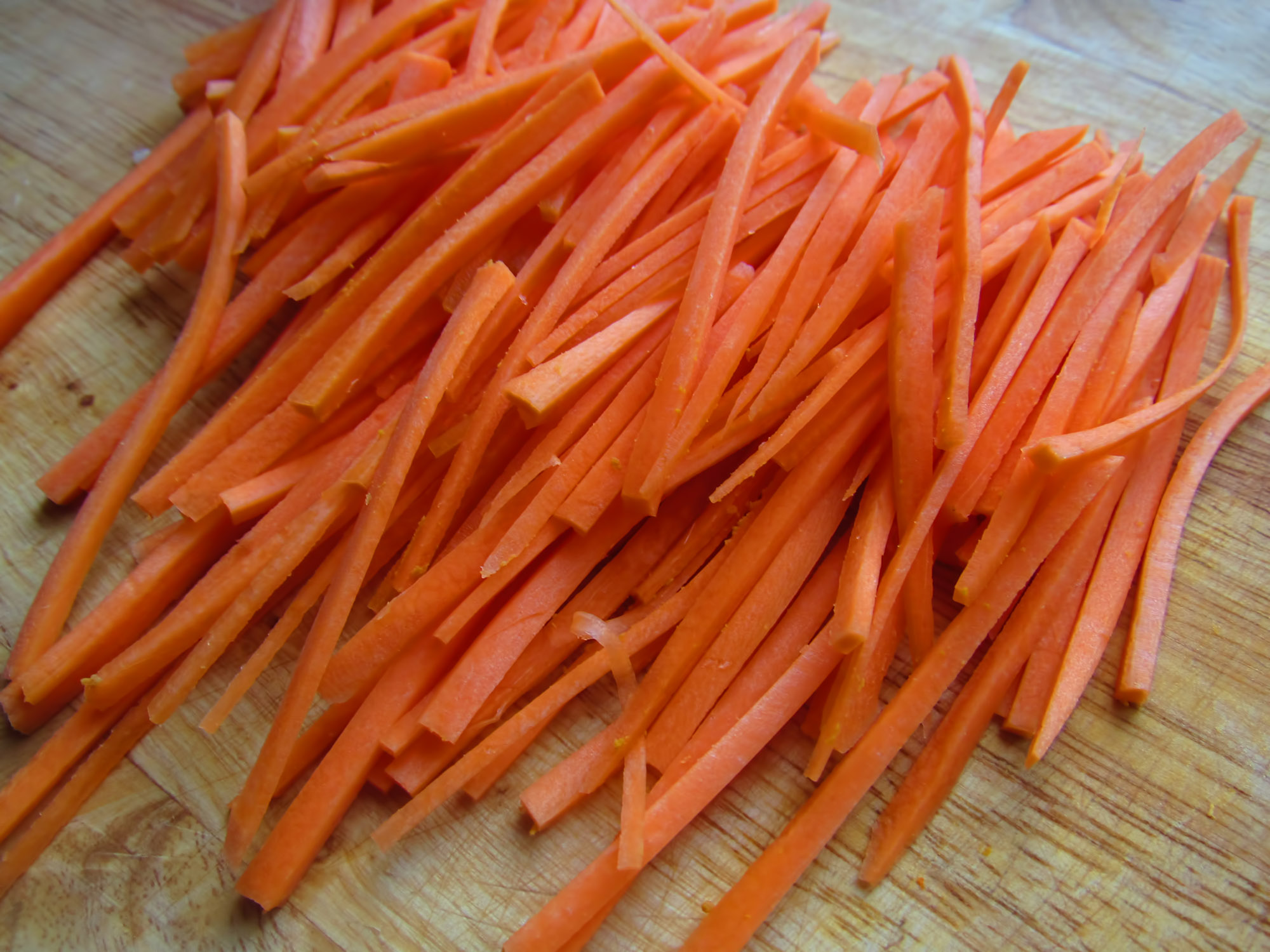 8. Имбирь чистим и нарезаем очень тонкой соломкой, можно использовать обычную тёрку.