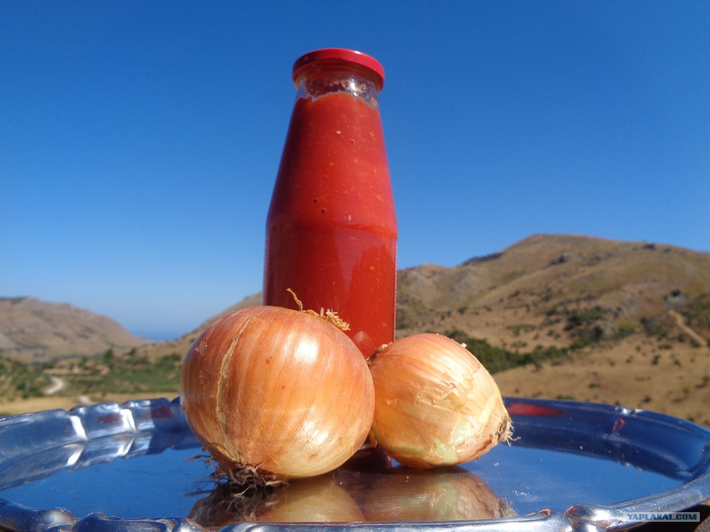 300 г — это две средние луковицы. Помидорная бутылка стандартного размера — для масштаба.