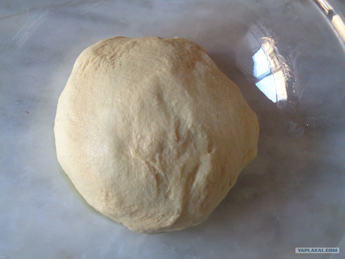 Кладу его во вместительную миску, смазанную маслом: это делается опять же для того, чтобы тесто не прилипало к её стенкам. В данном случае тесто уже достаточно смазано маслом и не будет этого делать, но традиция есть традиция. В конце концов, тесто маслом не испортишь!