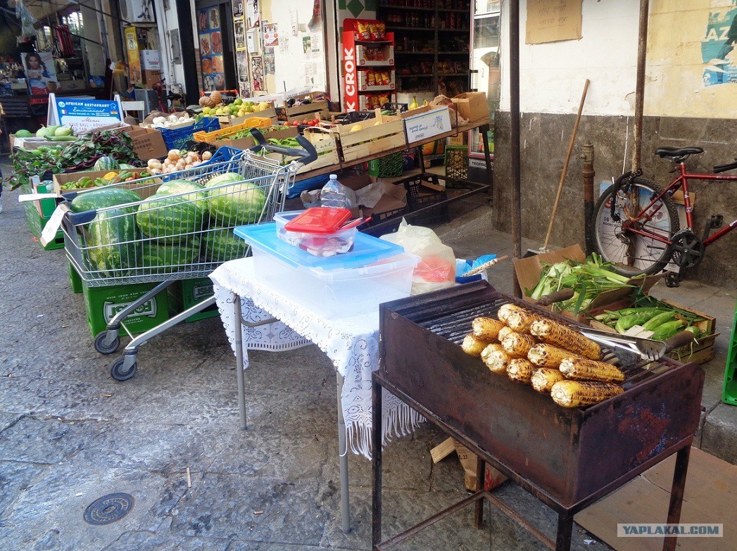Вот эта тележка стоит здесь на углу постоянно. Наверное, на этом месте стоял и отец, и дед этого сфинчонаро.