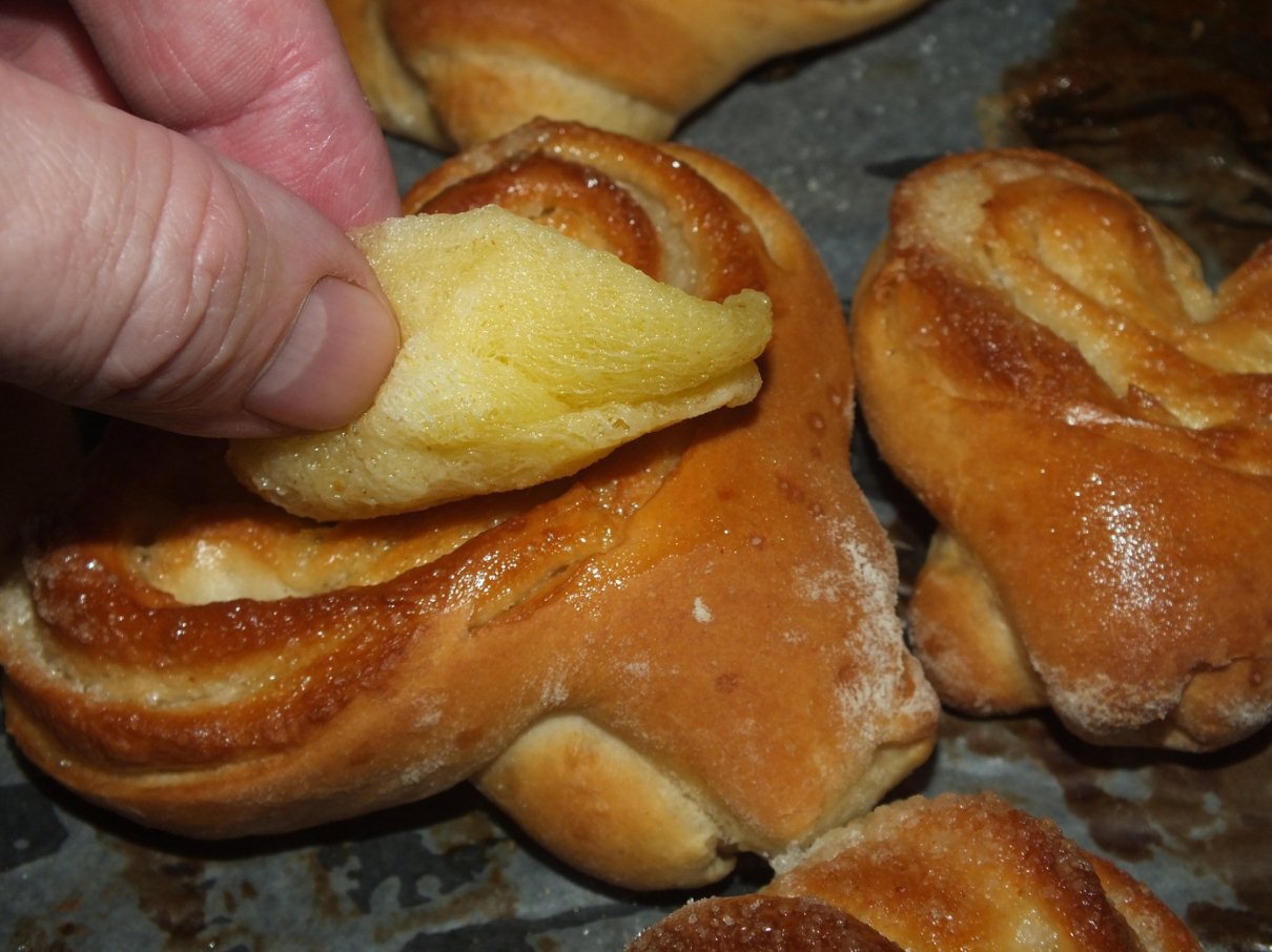 Сегодня просто хоть тресни захотелось тех плюшек из детства. С молоком холодным. И ещё вспомнил. Мне нравилось их поливать домашним малиновым вареньем. Магазинного такого нет...