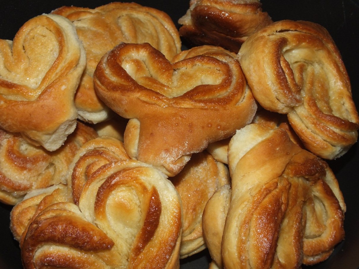 Помимо сердечек существуют еще несколько форм булочек.: плетенка, розочка, бутон.