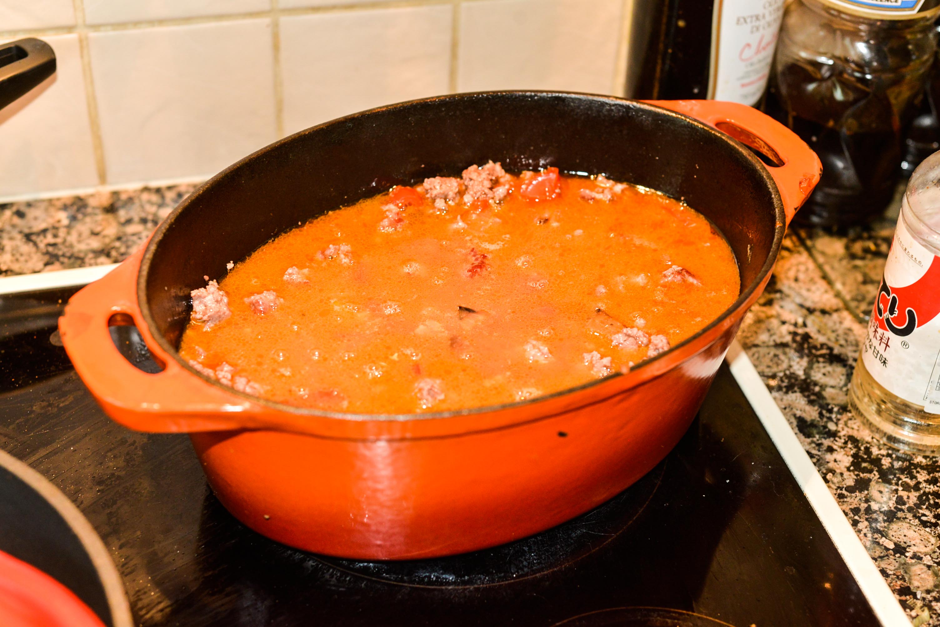 Оставляем дальше томиться. Пускаем в оборот бобы. В принципе блюдо готово. Но чем дольше его ‘томить’ тем насыщенней будет аромат. Я его оставил еще на часик на самом малом огне и вот оно готово мое ЧиЛи.