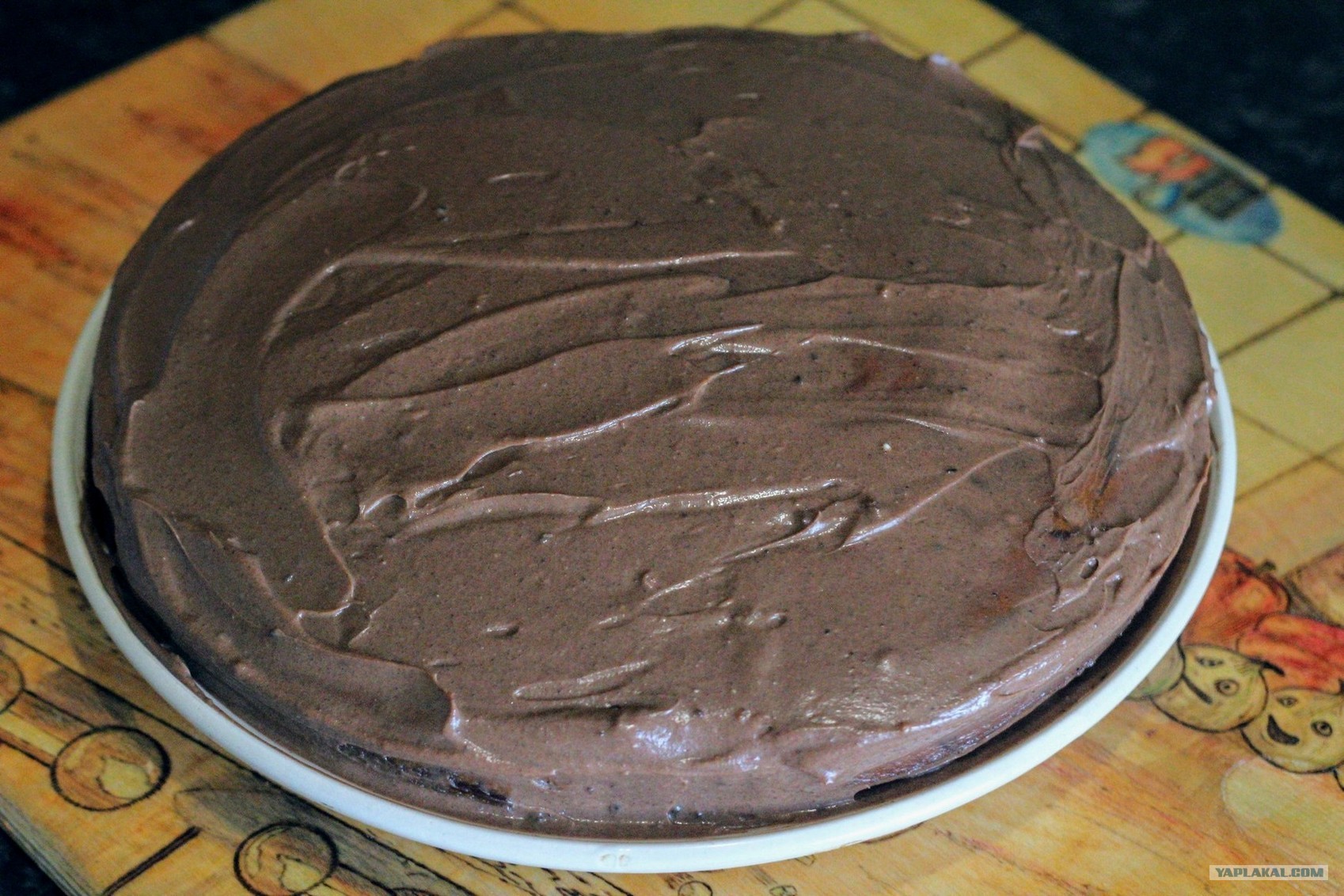 Теперь обмазываем торт нашей глазурью и ставим в холодильник на 3-4 часа, чтобы он настоялся.