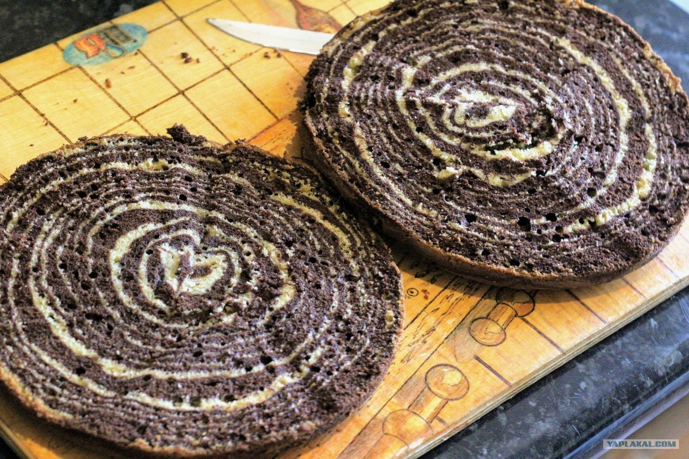 В моей семье его модифицировали, и он стал "Жирафом": белое тесто делали более густым и крутым, и оно в жидком темном тесте проступало не полосками, а пятнами.