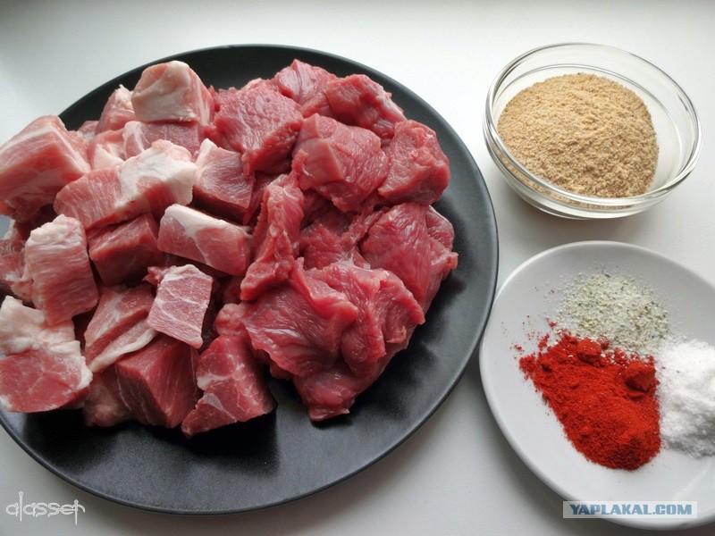 Порезал мясо на небольшие куски, чтобы прокрутить в мясорубке и заранее приготовил специи.