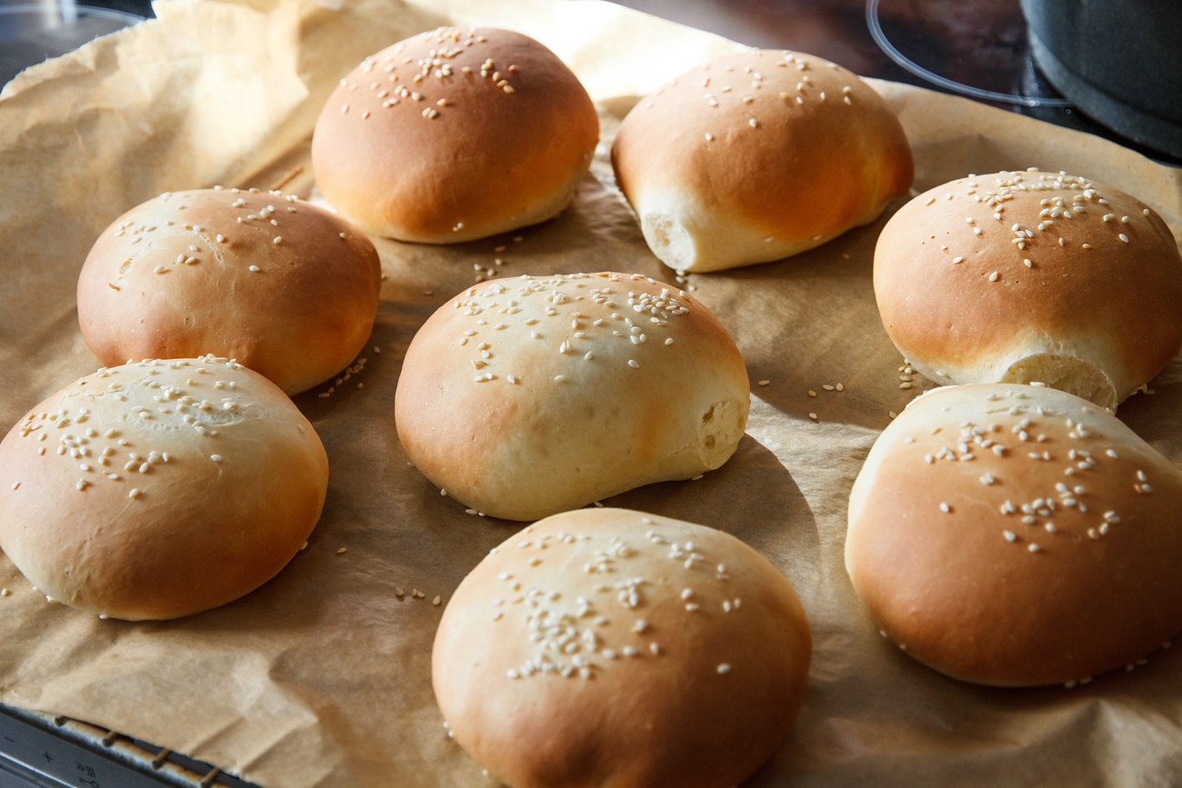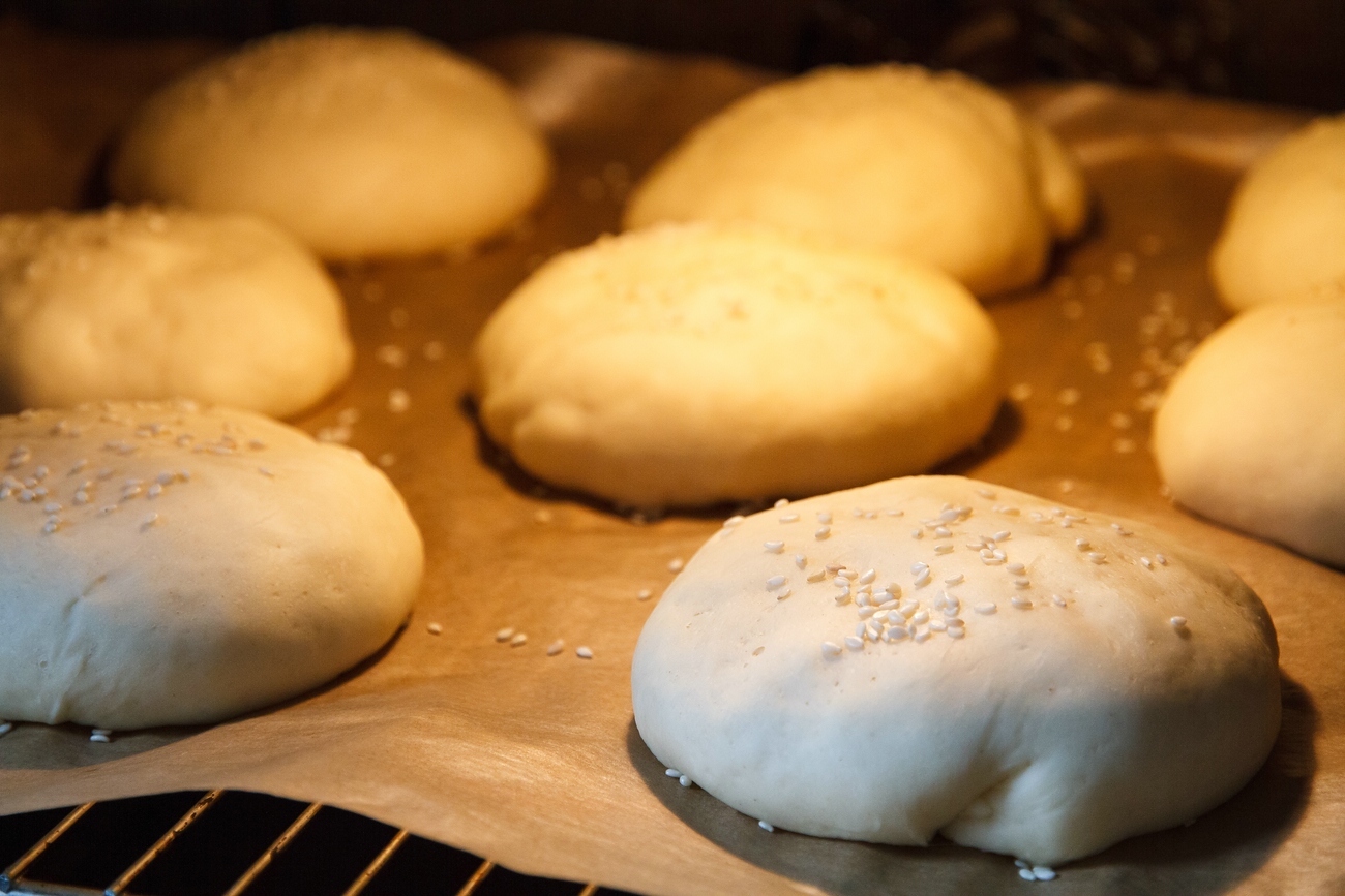 третьей рукой присыпаем булочки (по желанию) кунжутом и отправляем в духовку на 15-20 мин. при 180°