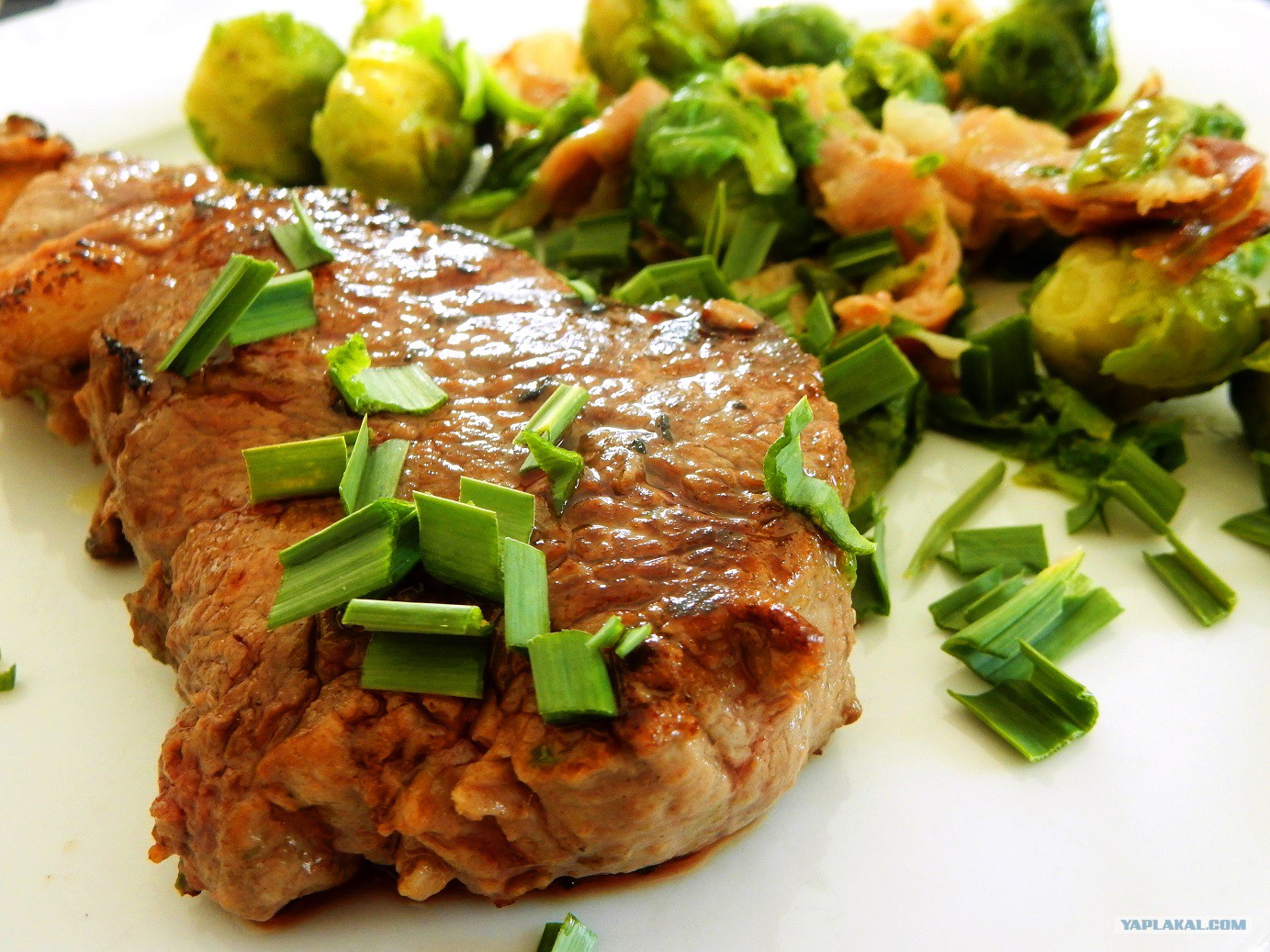 От меня — мясо, с гарниром из мяса, и немного зелени.