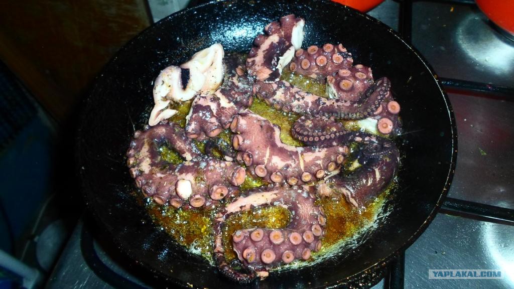 Подают его всегда горячим облив зеленым маслом.Ну что сказать в заключении -многие боятся пробовать на вкус это страшное на вид головоногое ,но если вам представится возможнось пробуйте не задумываясь и вы не пожалеете !
