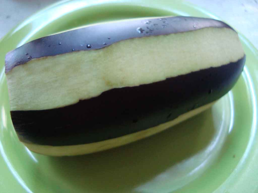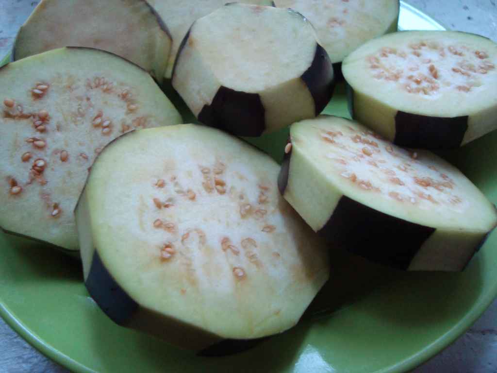 А вот у меня есть маленький секретик... ну не то, чтобы секретик, но его не многие применяют к баклажанам. Чтоб баклажаны не темнели на срезе их смачивают либо лимонным соком, ибо слабым раствором уксуса. Прямо киточкой для помазки. Ну... такая силиконовая кисточка.