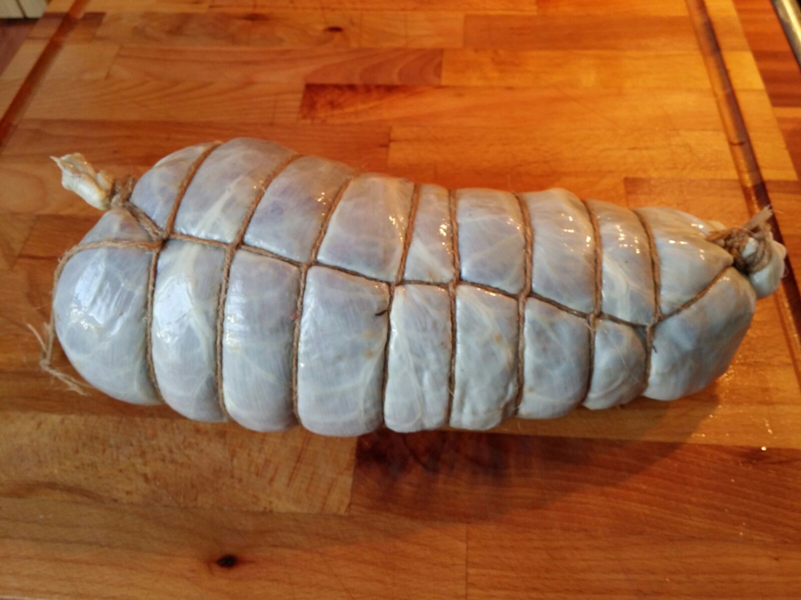 Я покупал года 2 назад, черева свиная, калибр- как для колбасок для жарки(купат) на глаз см.3. Тогда опыт оказался неудачным:))) Набил нормально, о том, что надо проколоть не подумал( да и не знал) взорвались при жарке все