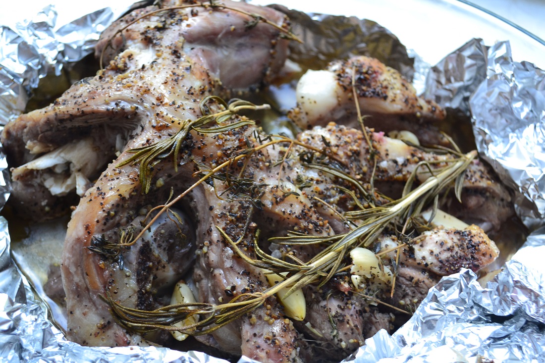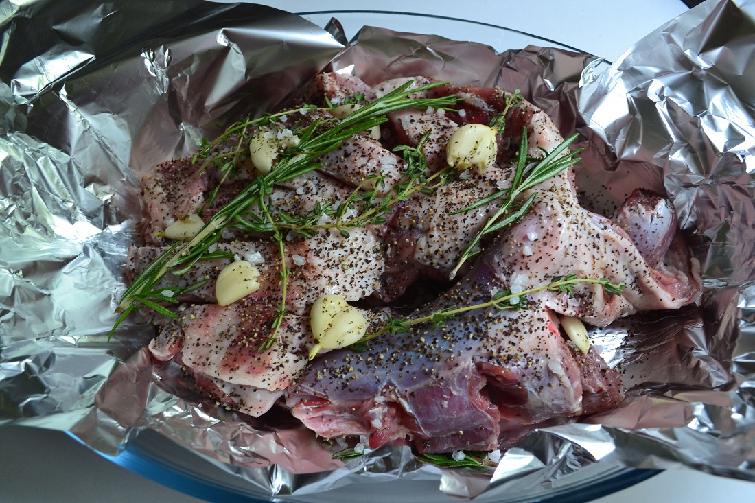 10. Плотно заворачиваем в фольгу и отправляем в духовку на 1,5 часа, при температуре 190 гр. С.