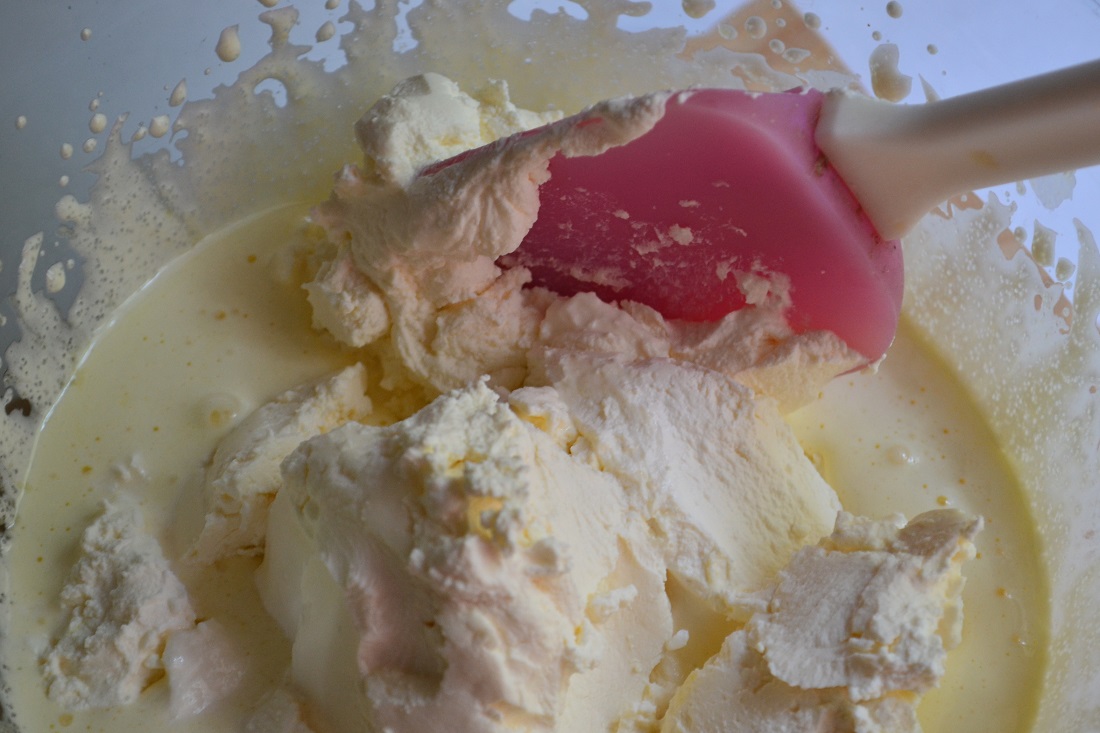 16. В желтки тщательно вмешиваем Маскарпоне. Стараемся, чтоб не осталось комочков.