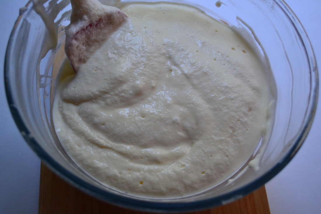 17. Затем туда же ОЧЕНЬ аккуратно вмешиваем белки. Перемешиваем медленно снизу вверх лопаточкой до объединения.
