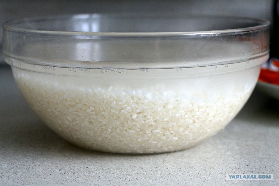 А можно промыть и замочить рис. Вот если бы рис я брала девзиру, то именно с этого бы и начала, потому что воды и жира он берёт очень много, и для того, чтобы он успел нормально приготовиться после закладки, его необходимо замачивать, на 2-3, а то и больше, часов. Авангард я замочила на час, время варки зирвака. Почему? По аналогии с обычным краснодарским, внешне они похожи. В общем-то, почти угадала, как оказалось в конце, минут 10 можно убрать. Итак, рис тщательно промыла и замочила в тёплой подсолёной воде.