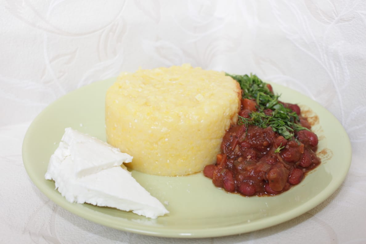 Для Грузии и Абхазии гарнир №1 это мамалыга или гоми — кукурузная каша, которая варится без соли. Ее подают вместо хлеба к различным блюдам. Так же можно очень горячее гоми выложить на тарелки и повтыкать в него кусочки молодого сыра - будет очень вкусное блюдо.