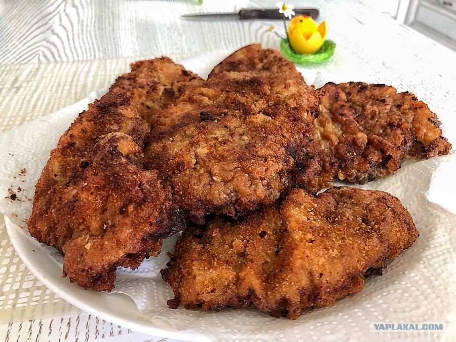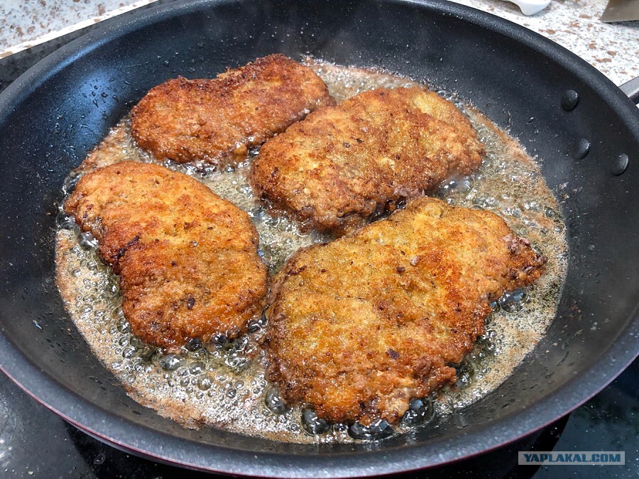 Вопрос такой: панировка всё равно частично опадает. Два шницеля на сковородке зажаришь, но опавшая панировка тупо сгорит. Масло менять после двух шницелей - неоправданно дорого. Что делать?