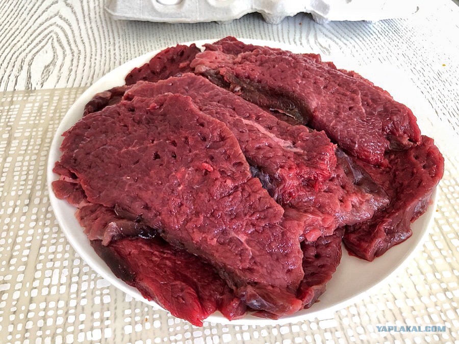 Кстати, выдержанное мясо резалось ну как масло. Хоть сырое ешь.