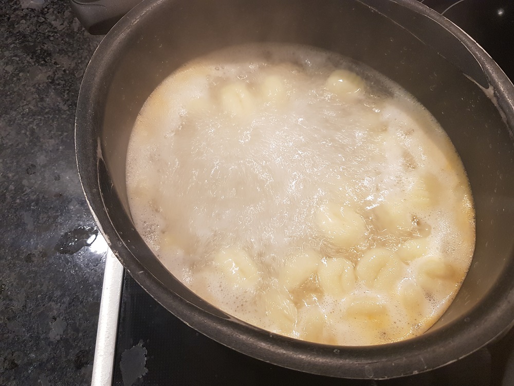 . Ну, как пасту варить рассказывать тоже не надо, я думаю, на пачке все читать умеют. Хотя с таким соусом домашние ньокки конечно лучше были бы, но мы неделю назад их делали и сейчас снова тестом заморачиваться настроения не было, посему щас вот от ГранИталия, одни из лучших, но все равно домашним проигрывают, да.