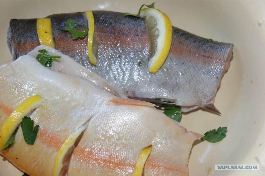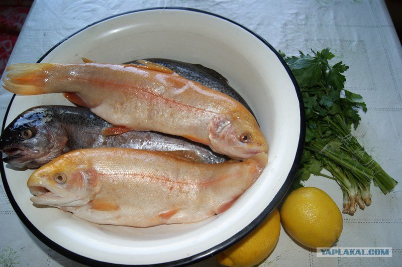 У меня 5 маленьких форелек, пара лимонов, зелень, соль alk.gif