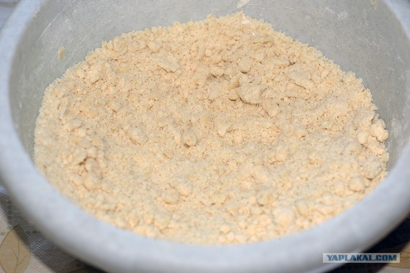 Отлично, вот это все и превратим в печиво. Для начала надо перетереть муку с маслом.