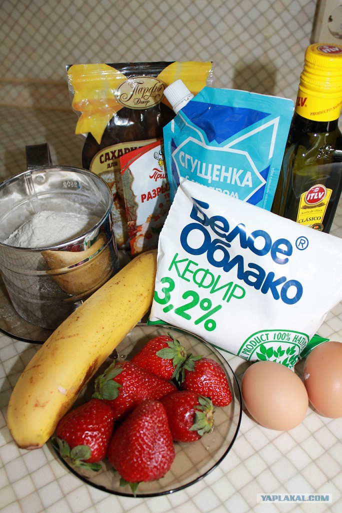 Итак, «Оладья с клубникой и бананами, в духовке», да-да, оладья будет в единственном числе)))