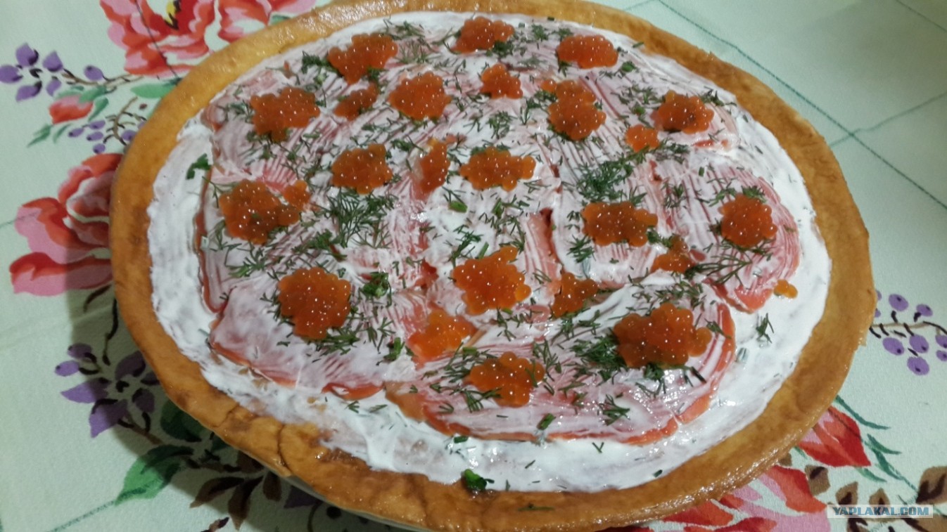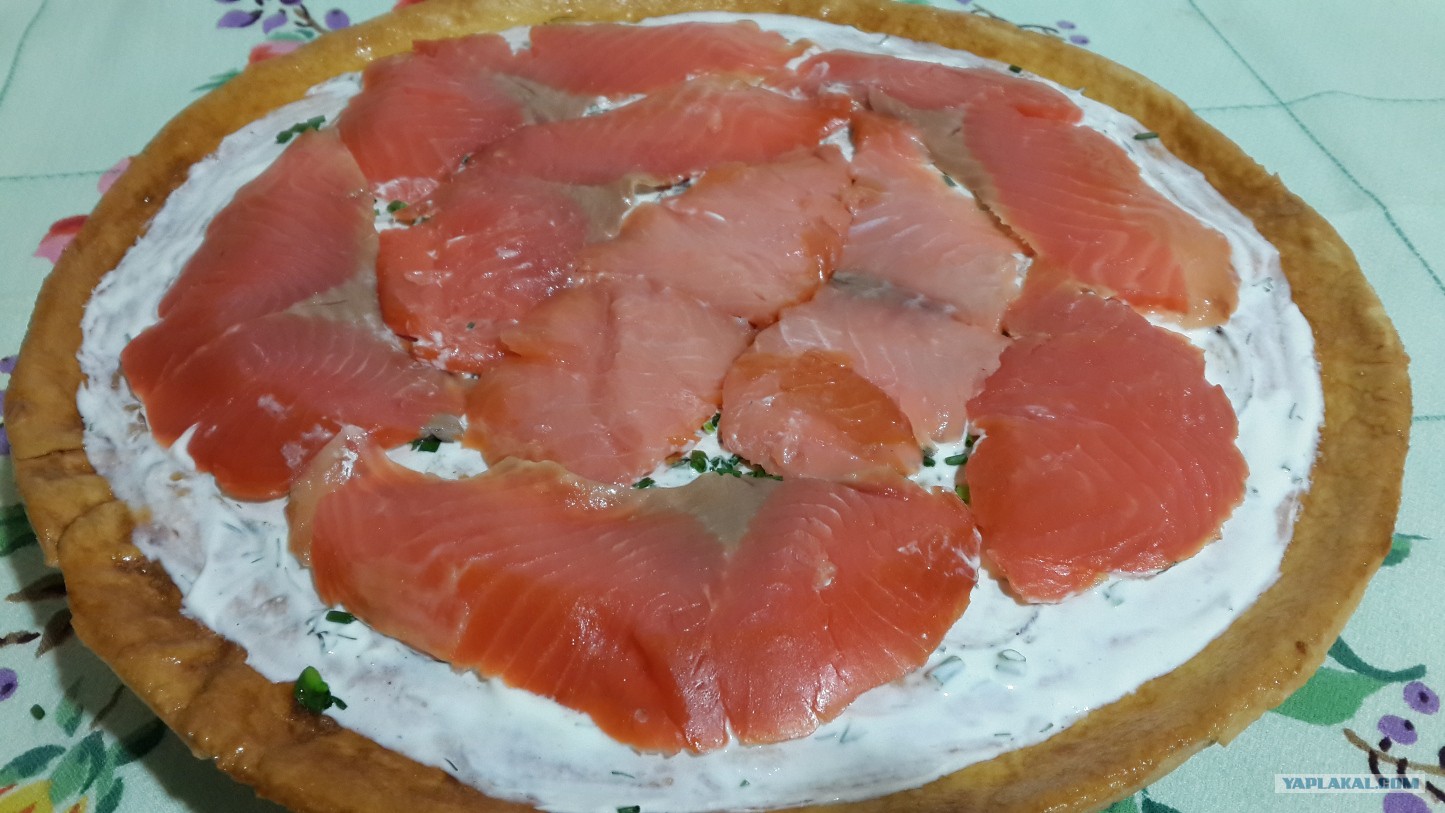 Пицца с копченым лососем и французской икрой осетра