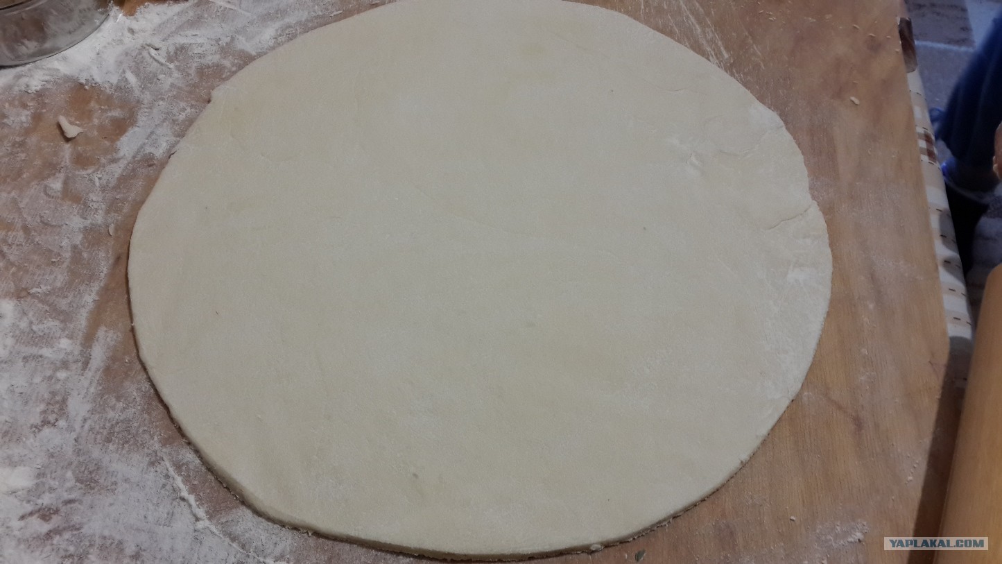 Теперь раскатываем наше тесто для пиццы в небольшой круг.