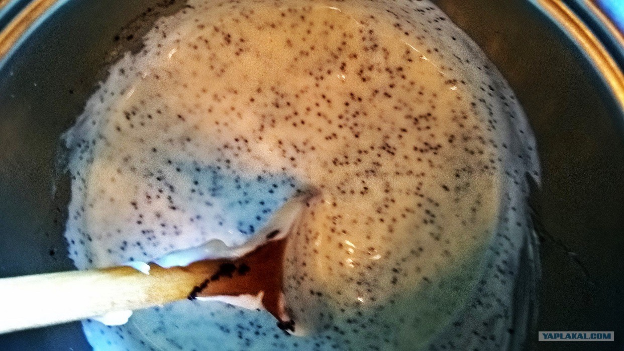Добавить сметану и мак, перемешать.