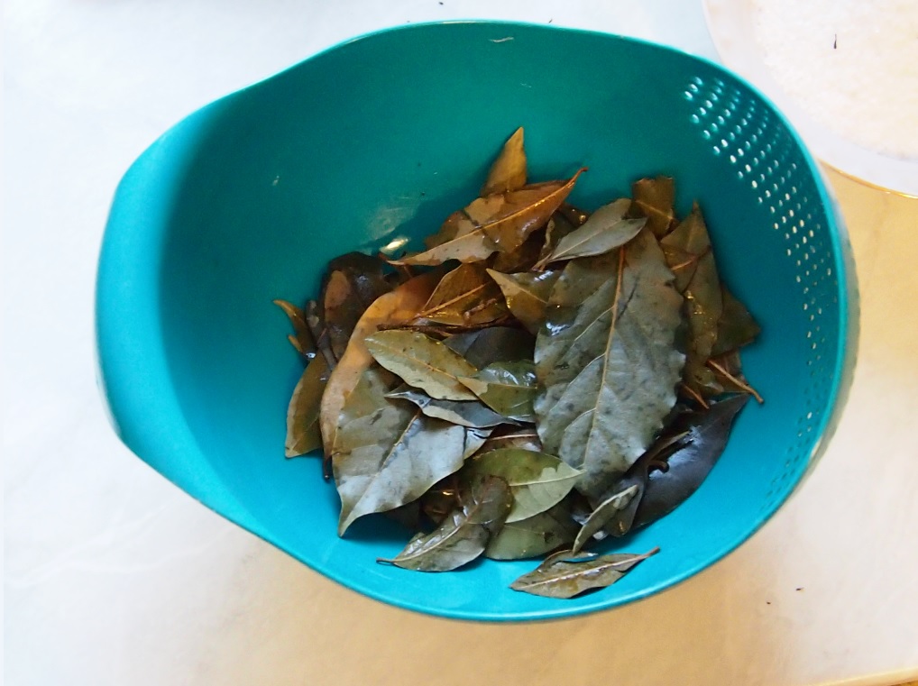 Отсчитываем 45 листьев лавра и окатываем его кипятком. Помоем.
