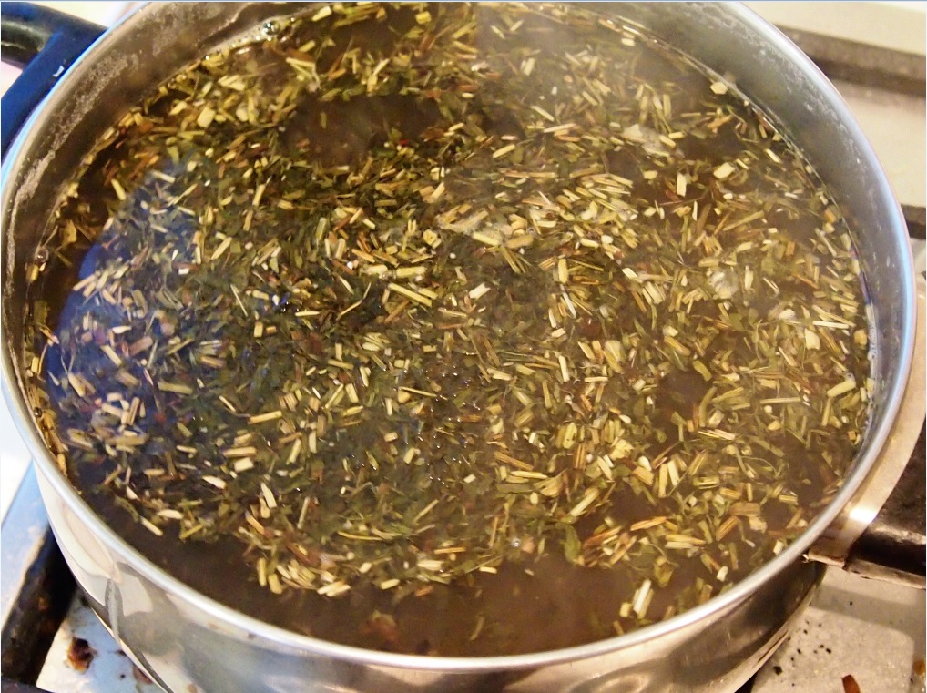 Сливаем воду в кастрюлю и засыпаем в неё соль, сахар и эстрагон.