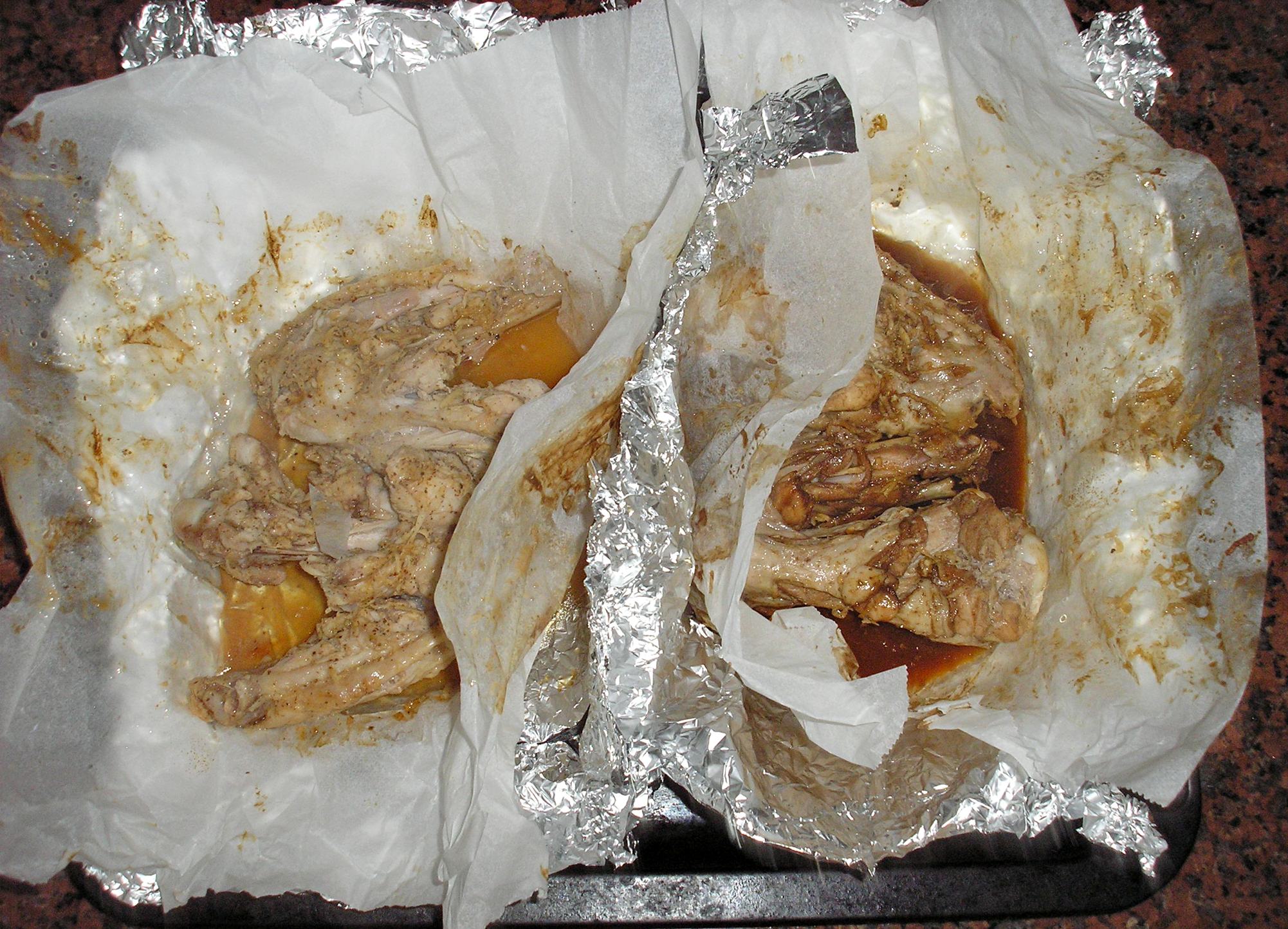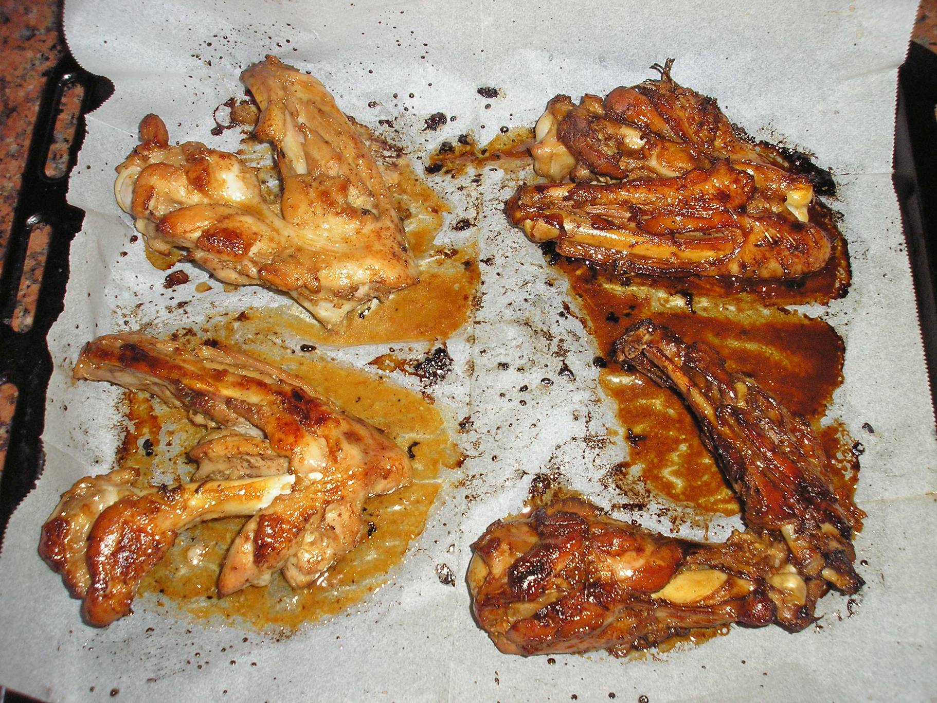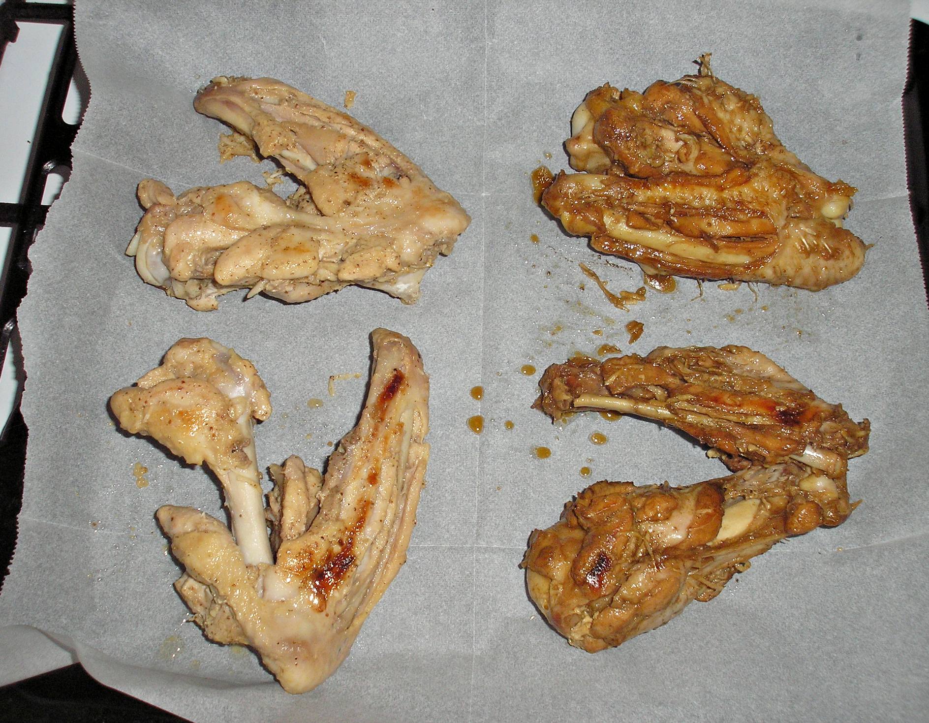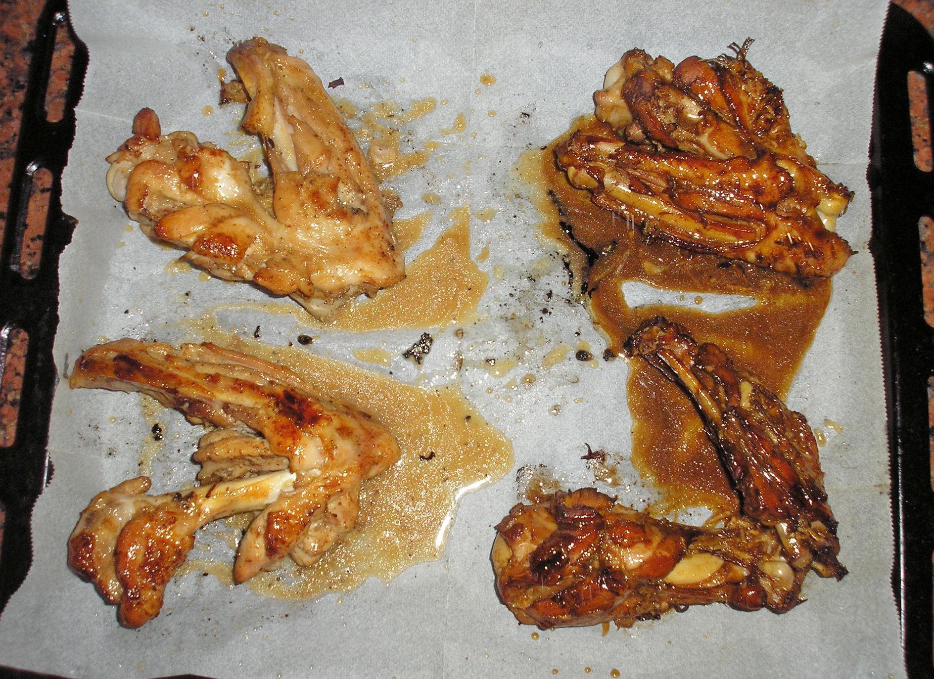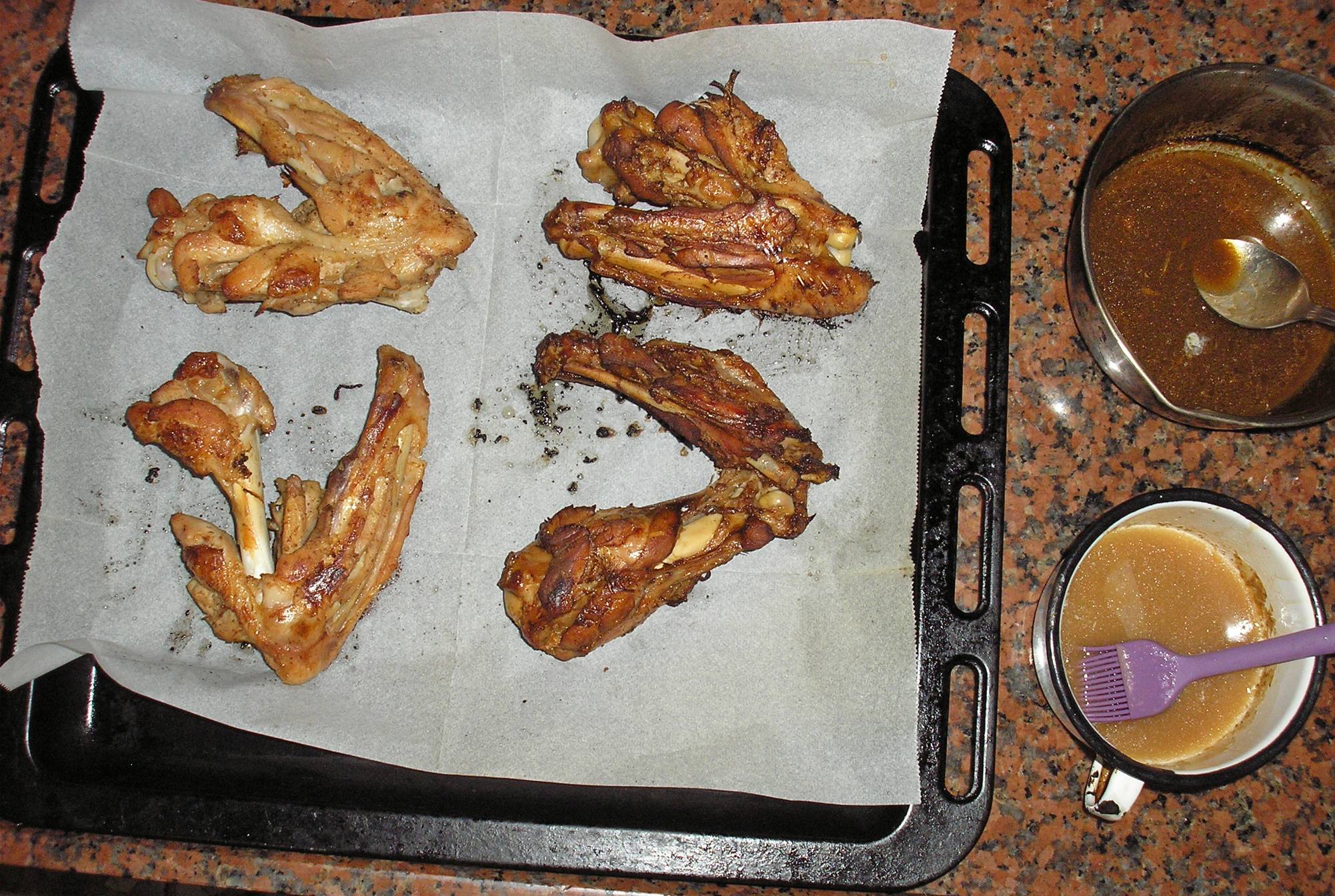 Крылья пихнула обратно в духовку чтоб подсушились (а то они совсем мокрые) а соус выпарила на плите в 2-х тарах - боялась что в духовке он будет до послезавтра выпариваться.