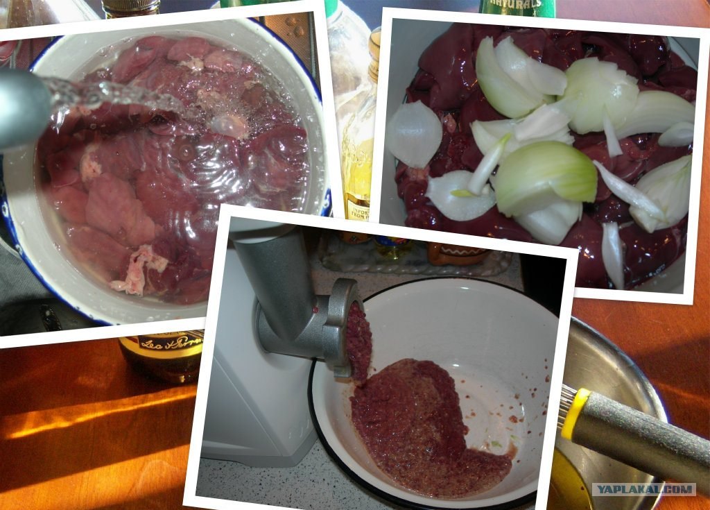 Печень помойте, измельчите в мясорубке вместе с луком
