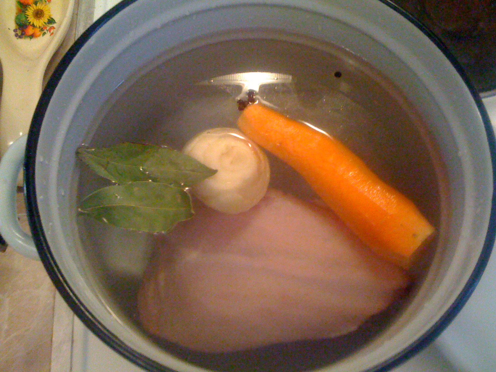 3.Из специй-пару листочков лавра, несколько горошин чёрного перца, соль "на треть" вкуса.