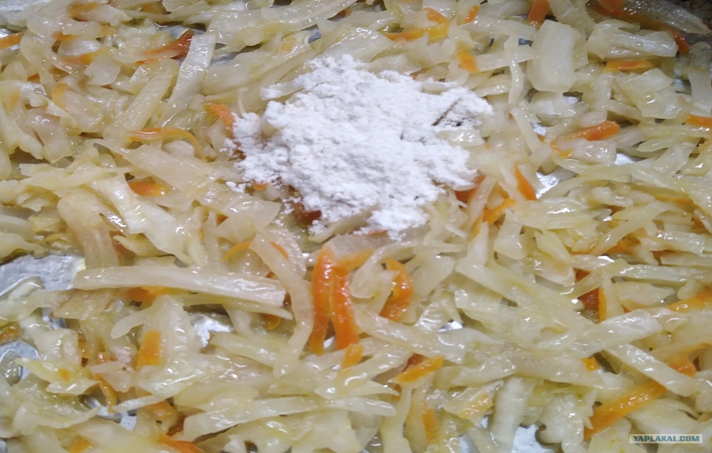 В конце фишка - мука пшеничная и огонь прибавить. Как запахнет на всю кухню пирожками с капустой - самое оно.