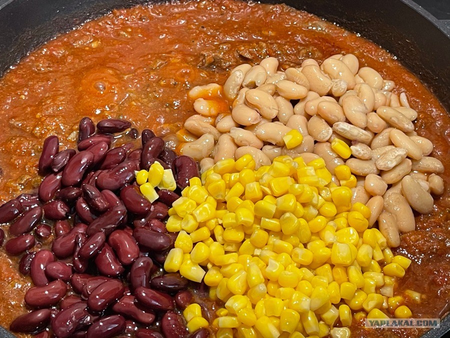 Я люблю с фаршем делать чили. Быстрее и проще готовить. Чили без мяса тоже делаю, но тогда это как бы лобио получается))))))) , что тоже очень вкусно.