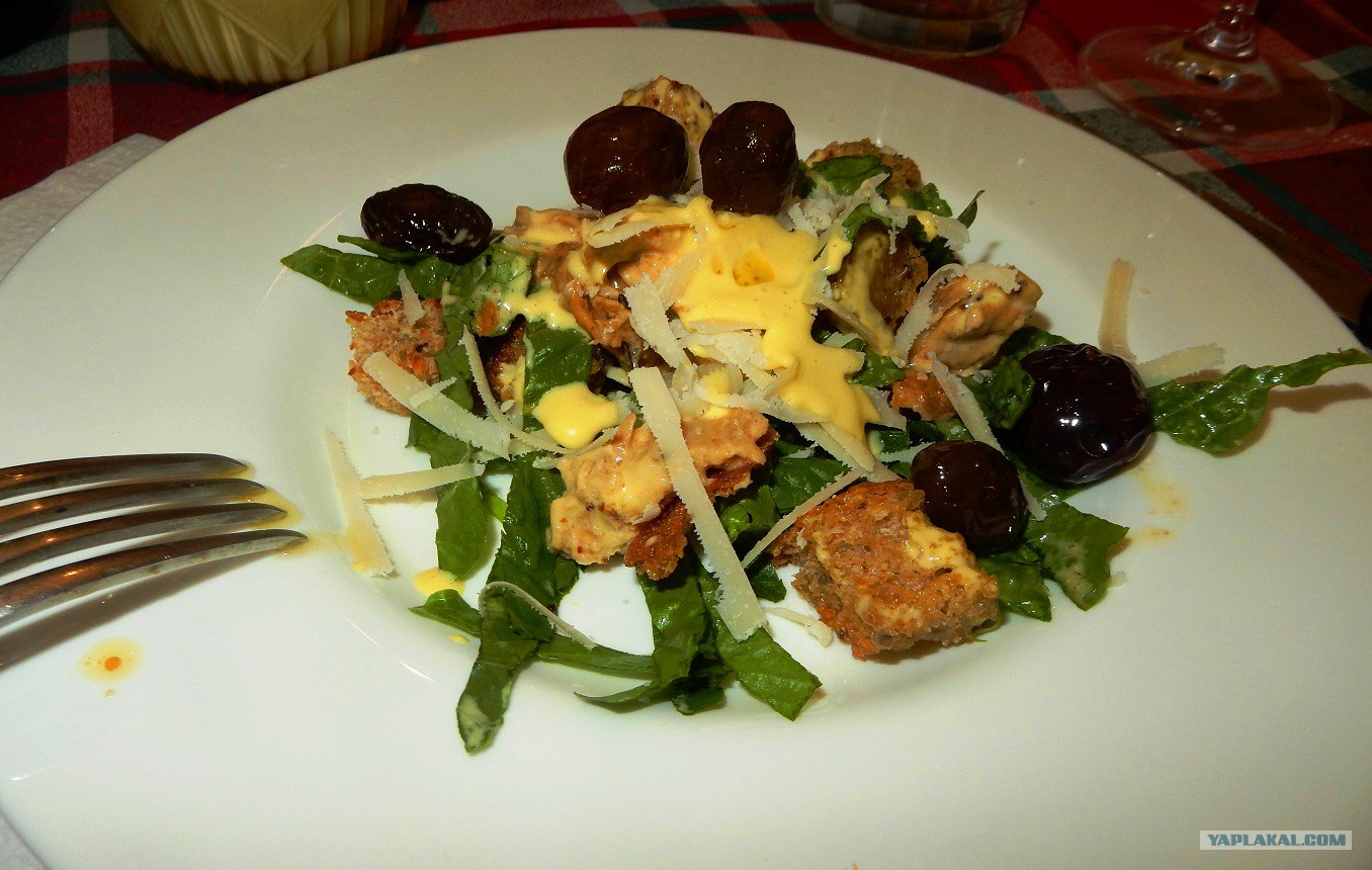 Как я и ожидала, мне не понравилось сочетание анчоусов и пармезана. Вот никак они не сочетаются, зачем так делать? Да и еще не очень понимаю крутоны в салате.