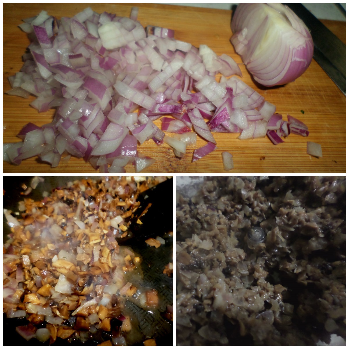 Лук пережаренные, добавленный в грибы и измельчены в блендере. посолить