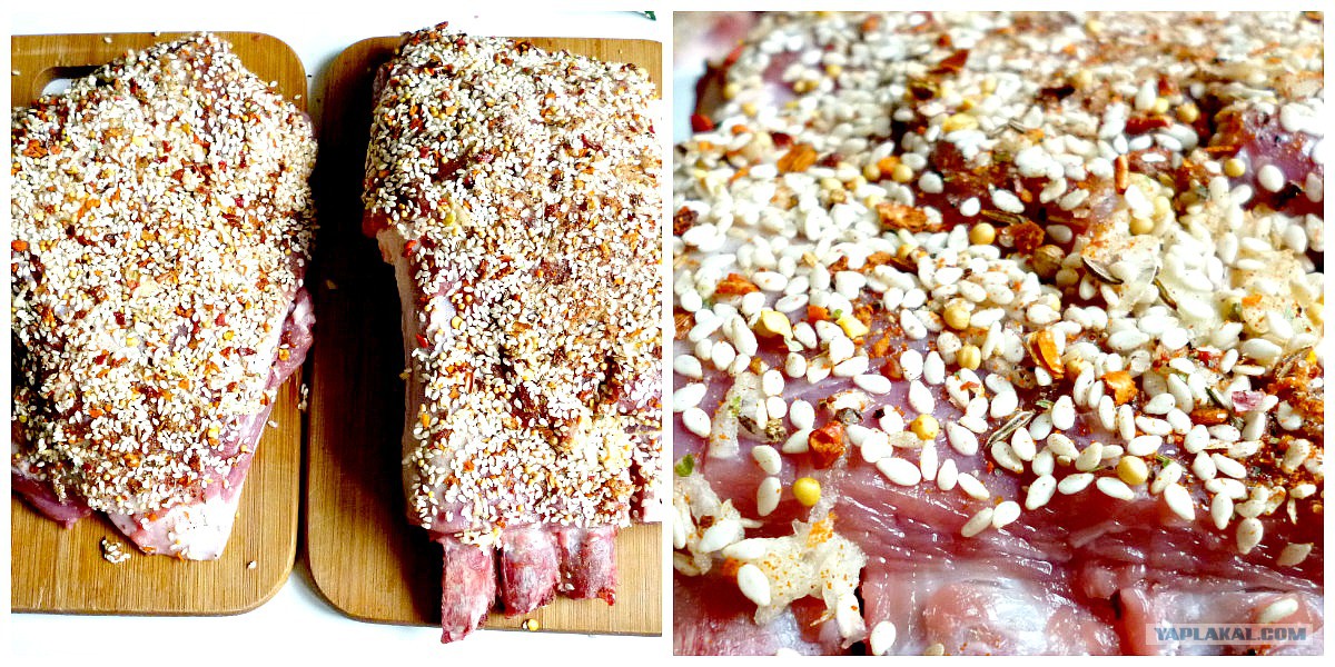 Затем мясо обваливается в смеси всех специй, только с одной стороны,